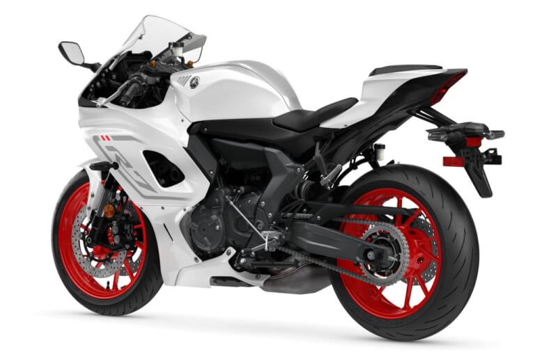 白色版本的YZF-R7在整流罩上的字樣也做了小修改,從原本的水平R7字體改為更有個性的斜面設計,此外,為了增添視覺變化,整流罩上也多了兩點紅色來點綴運動氛圍;從如此大面積的白色來看,這次的新車色應該是從60週年紀念塗裝版衍生而來,買不到60週年紀念塗裝版R7的朋友,或許可以考慮這個全新的白色塗裝版本,透過簡單的貼膜就能營造出相同的視覺感受。