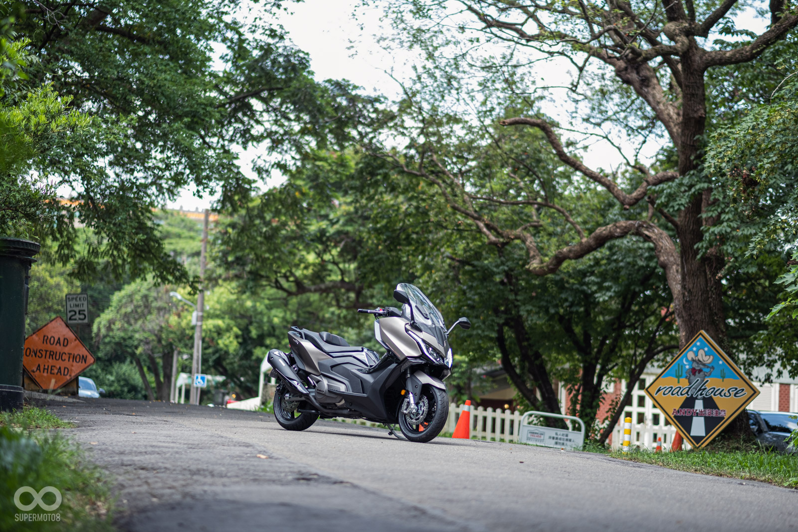 來到陽明山錯綜復雜的小條山路上,AK550 Premium在狹窄的山路上依舊有不錯的靈活動態表現,這要歸功於50:50的配重和前BREMBO煞車卡鉗帶來的出色煞車手感,即便是面對角度較大的下坡髮夾彎,AK550 Premium也能安然自若的重煞入彎,通過彎頂點後,270度並列雙缸引擎得出彎加速力道,真的會讓人相當陶醉在過彎的樂趣之中。