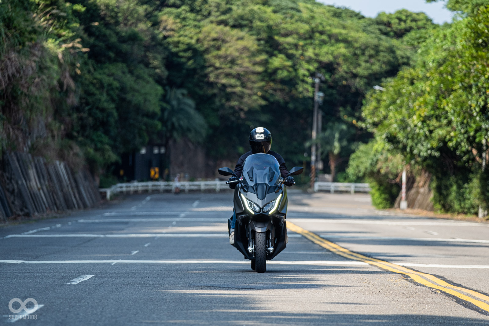 本次試乘路線從台北市區出發,一路往陽明山、陽金公路最終抵達北海岸的金山磺港安檢所附近;在市區道路上,AK550 Premium飽滿的雙缸動力真的讓人玩心大發,每一次綠燈亮起都忍不住想要大催油門來享受一下短跑衝刺的快感,270度點火的雙缸引擎渾厚的聲浪,也難怪很多一代AK550車友會選擇改裝一下排氣管來獲得更悅耳的聽覺享受。