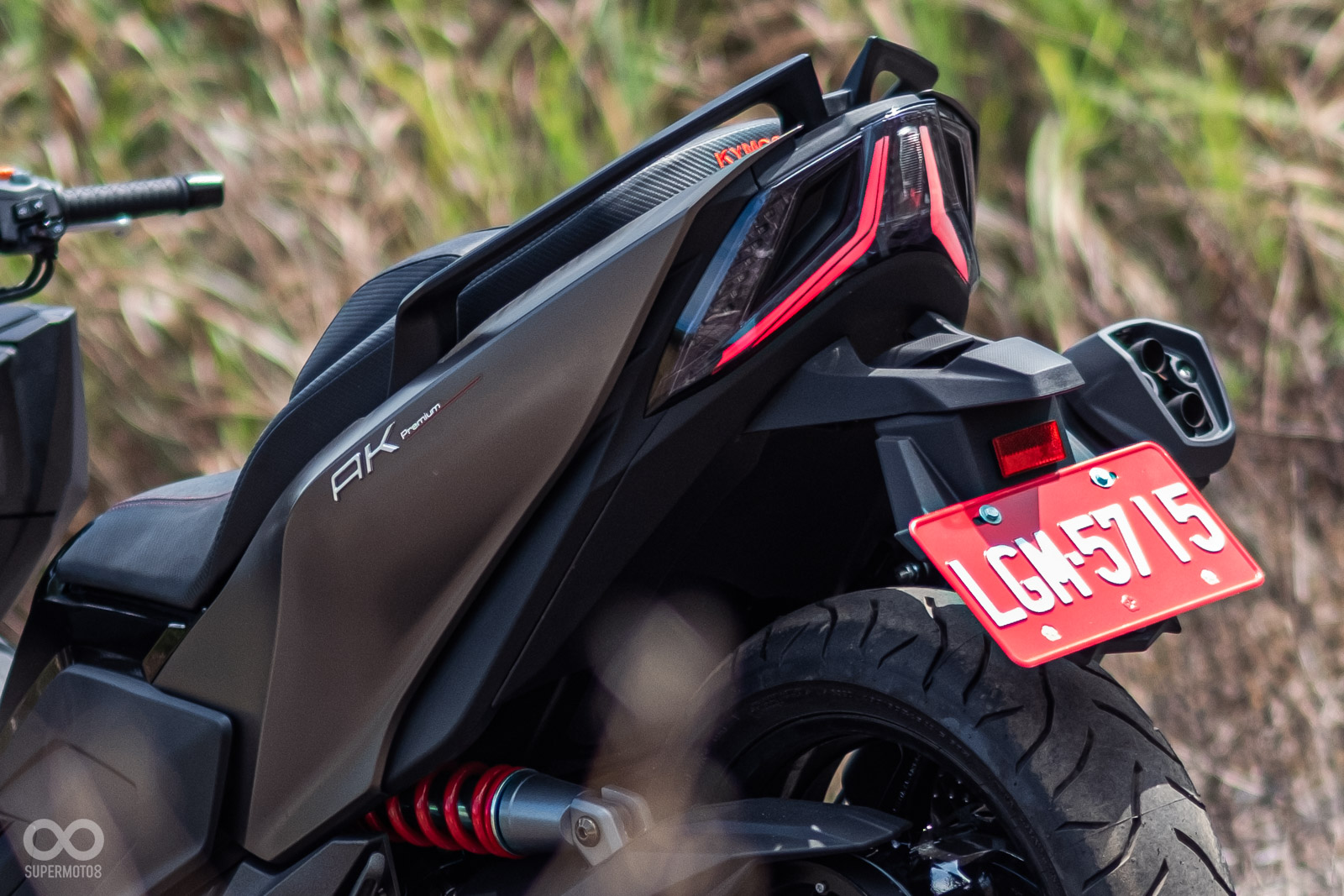 車身中後段則是和先前差異不大,大面積的塑料腳踏、金屬引擎側蓋和烤漆側殼交織出高質感的側面視覺;車尾部分也維持向上收束的上翹線條,配上動感十足的尾燈設計,讓AK550 Premium看起來戰鬥力十足。
