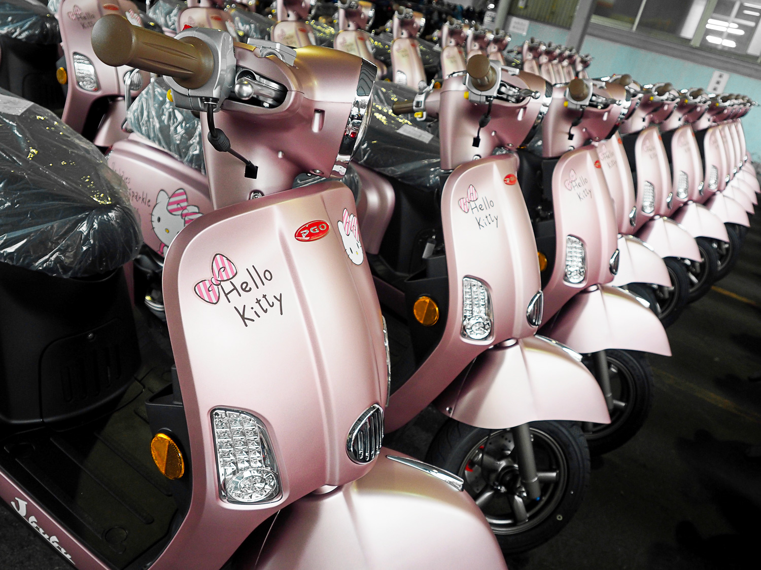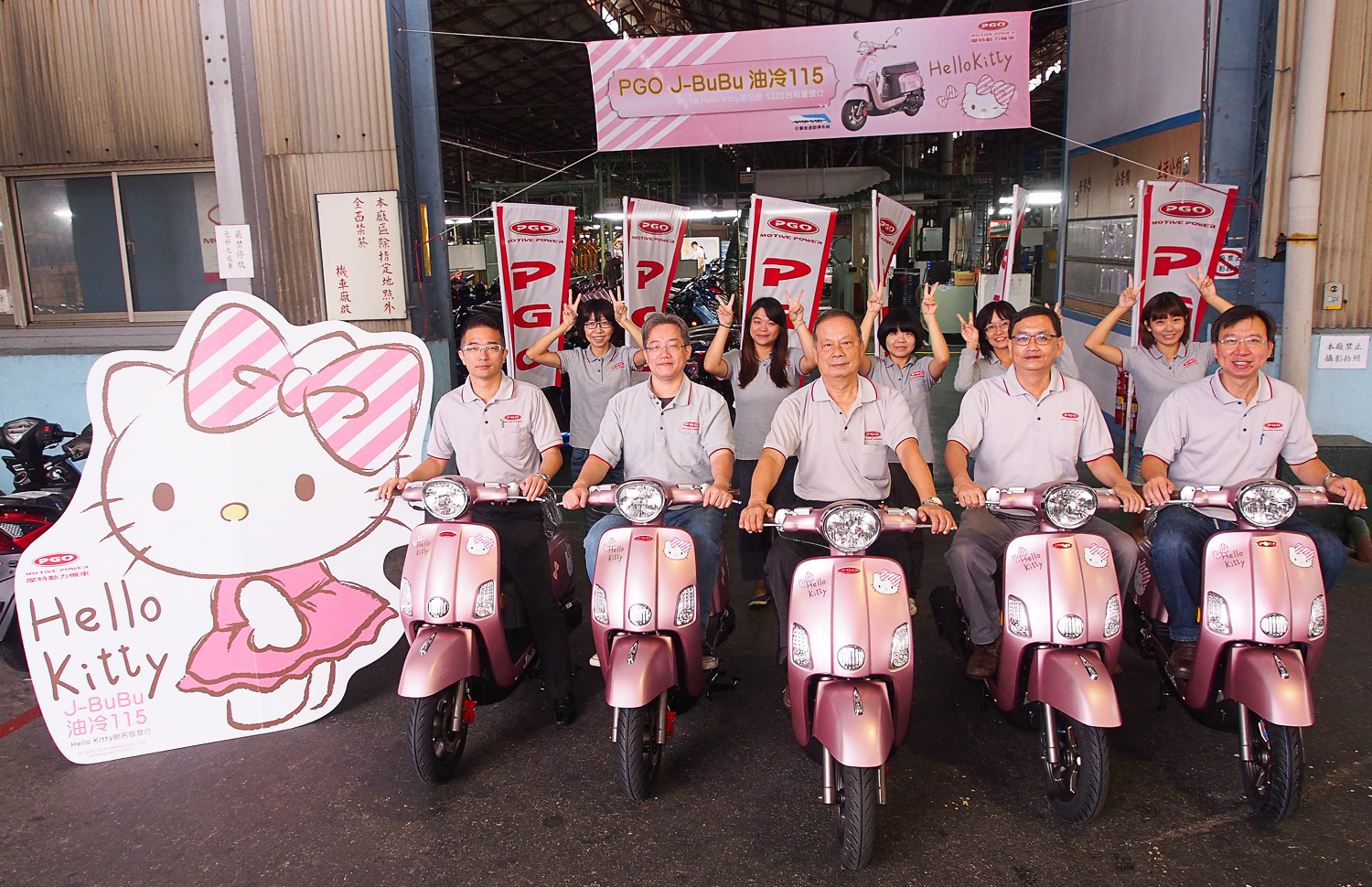 2016年,PGO與三麗鷗攜手推出了第四代「Hello Kitty聯名版J-BUBU」。此次,特別使用了時下最流行的玫瑰金色,強調經典魅力也可以很流行時尚。運用手繪少女的風格,希望擄獲從少女到熟女的心。今年限量1320台,代表著對戀人「一生愛你」的承諾。送給她,代表著你對她的愛更顯得歷久彌堅。