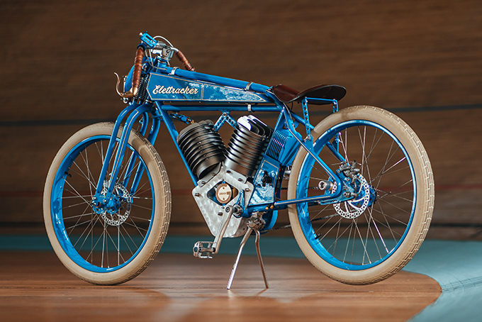 其他方面包括覆蓋著棕色皮革的車把、Kustom Tech橫桿等精品營造駕駛室的美感。電子和機械部件有關的所有管路和電線都隱藏在車架下方,保持車架部分的乾淨。最令人驚豔的是Elettracker雖然在外型上追求極致的復古風格,卻配備了藍牙連接和專用APP的功能,屬實讓人感到意外。雖然Elettracker是一台十足的現代機器,但風格上卻汲取了過去的時代的設計,這樣古今融合的突兀美感,我想就是Giacomo Galbiati的設計巧思吧!