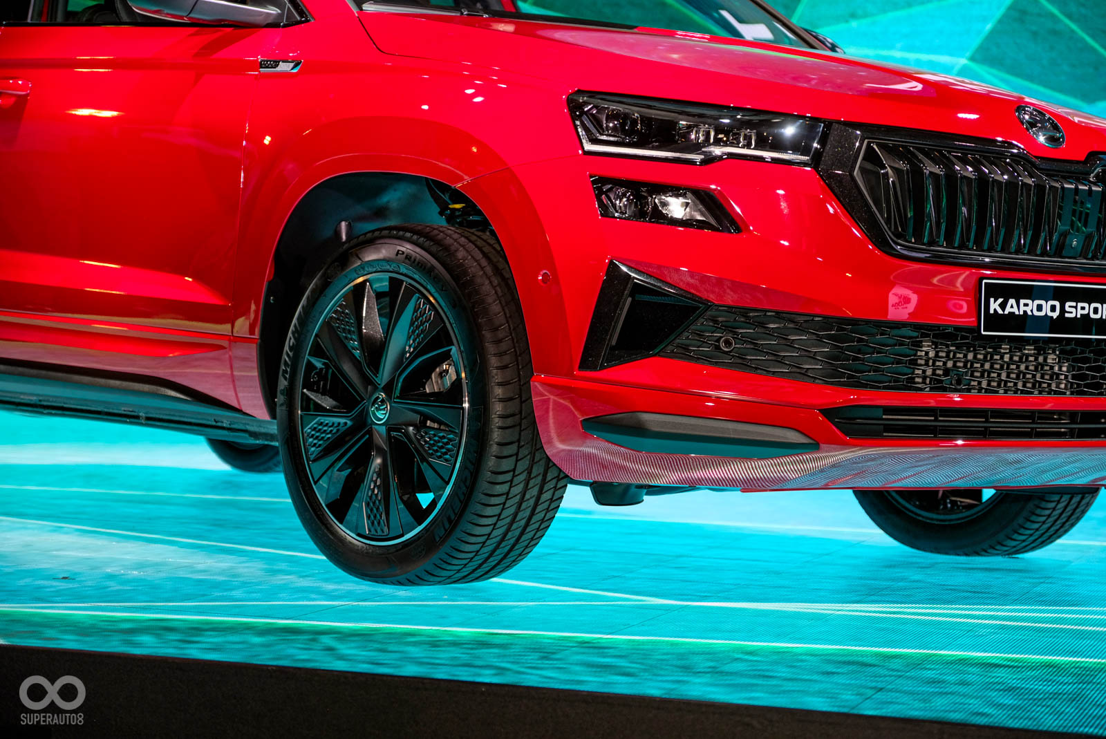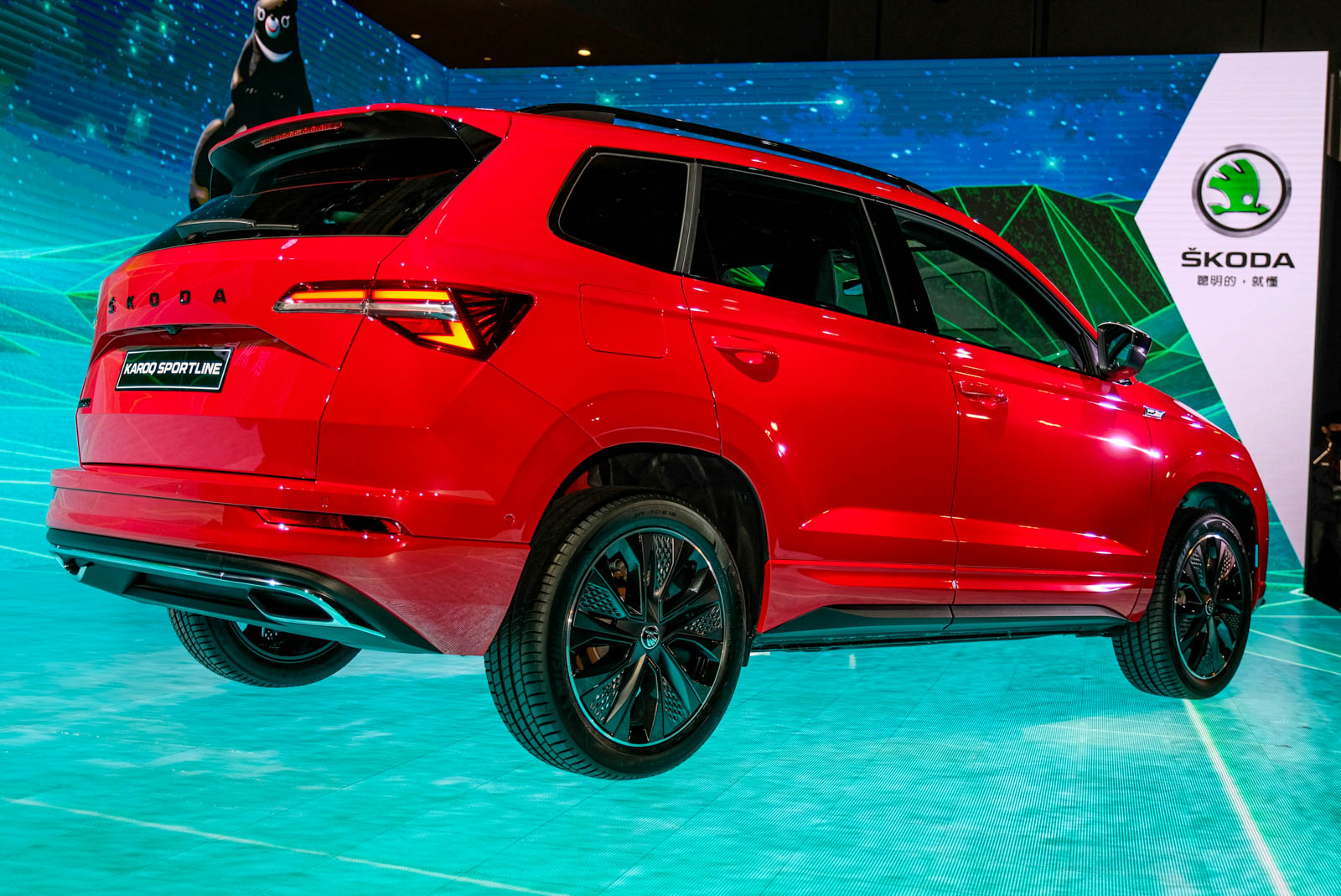 SKODA KAROQ本次改款在車頭部分換上新的直瀑式水箱護罩,同時車頭、車尾的保險桿也經過重新設計,讓整台車在視覺上增添更有家族化風味,同時在新玉山版(Sport Line)上也採用專屬黑化風格,黑色的水箱護罩、後照鏡蓋、車頂架、加大擾流尾翼等,讓KAROQ看起來更有殺氣。