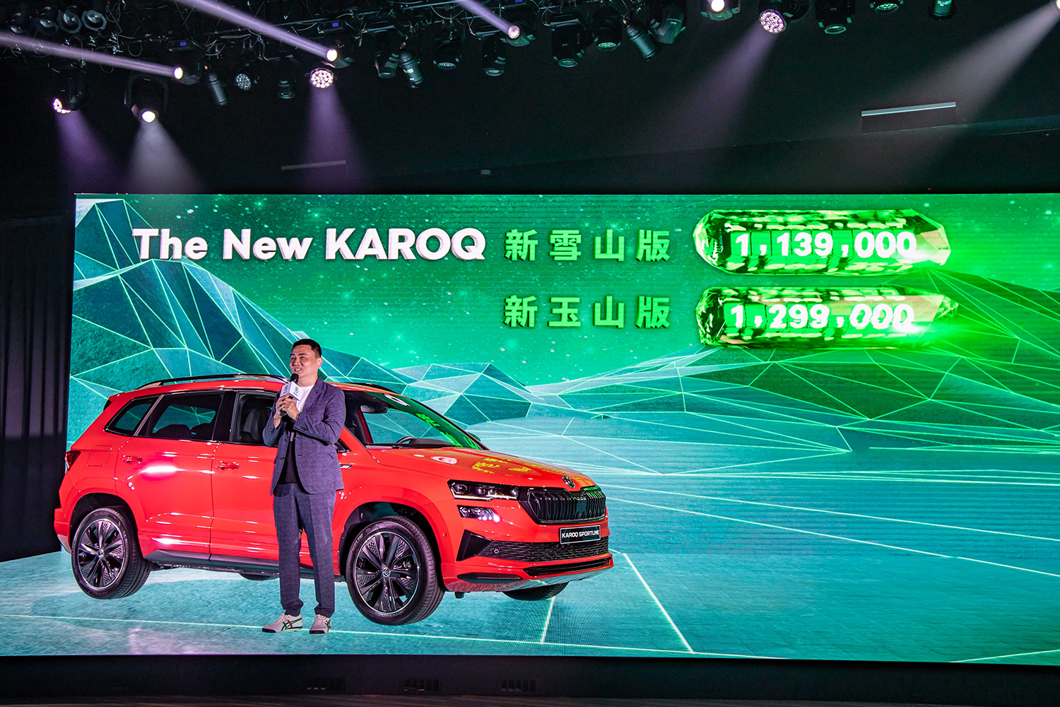 SKODA Taiwan今日正式發表KAROQ改款新車,本次在外觀設計上變得更為流線、氣派;科技、配備方面導入Matrix LED智慧複眼頭燈、一鍵啟動的Level 2駕駛輔助、10.25吋全彩數位儀表、9.2吋CNS 3.0娛樂系統;本次車型編成有新雪山版 113.9萬元、新玉山版(Sport Line) 129.9萬元;SKODA也宣布首批400台車主也將獲得免費升級皮椅。