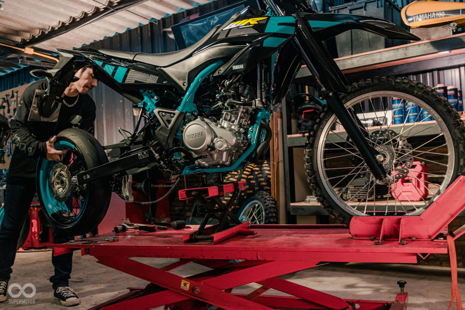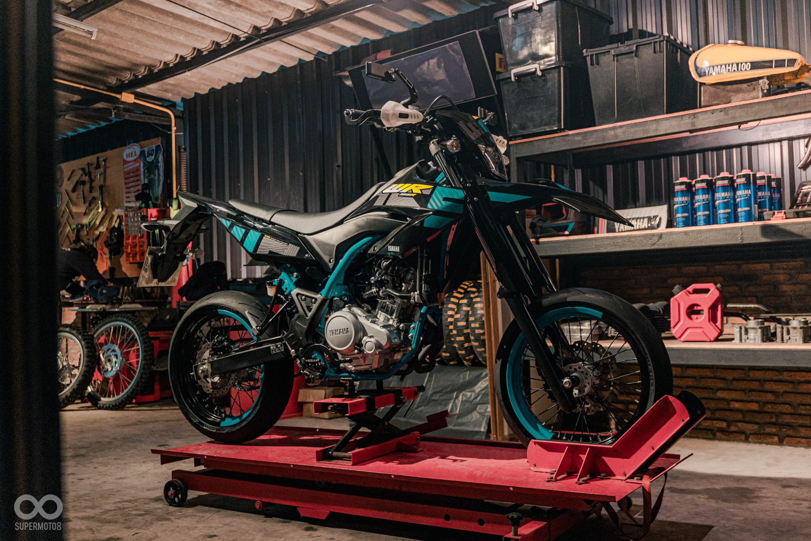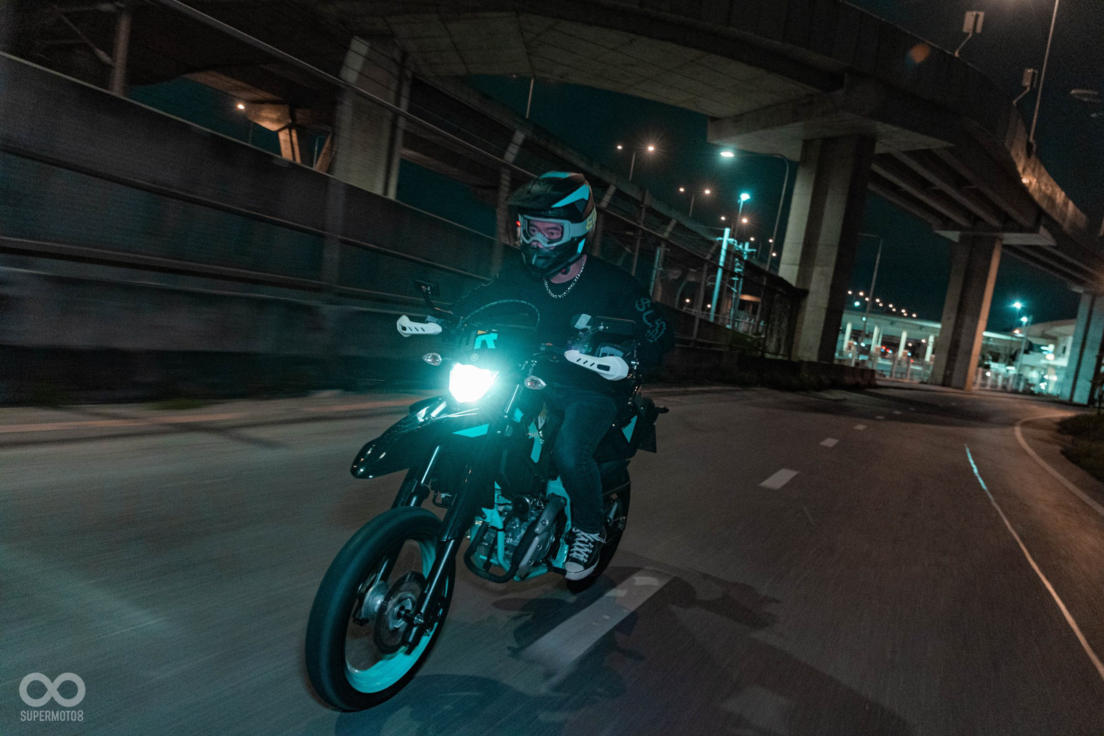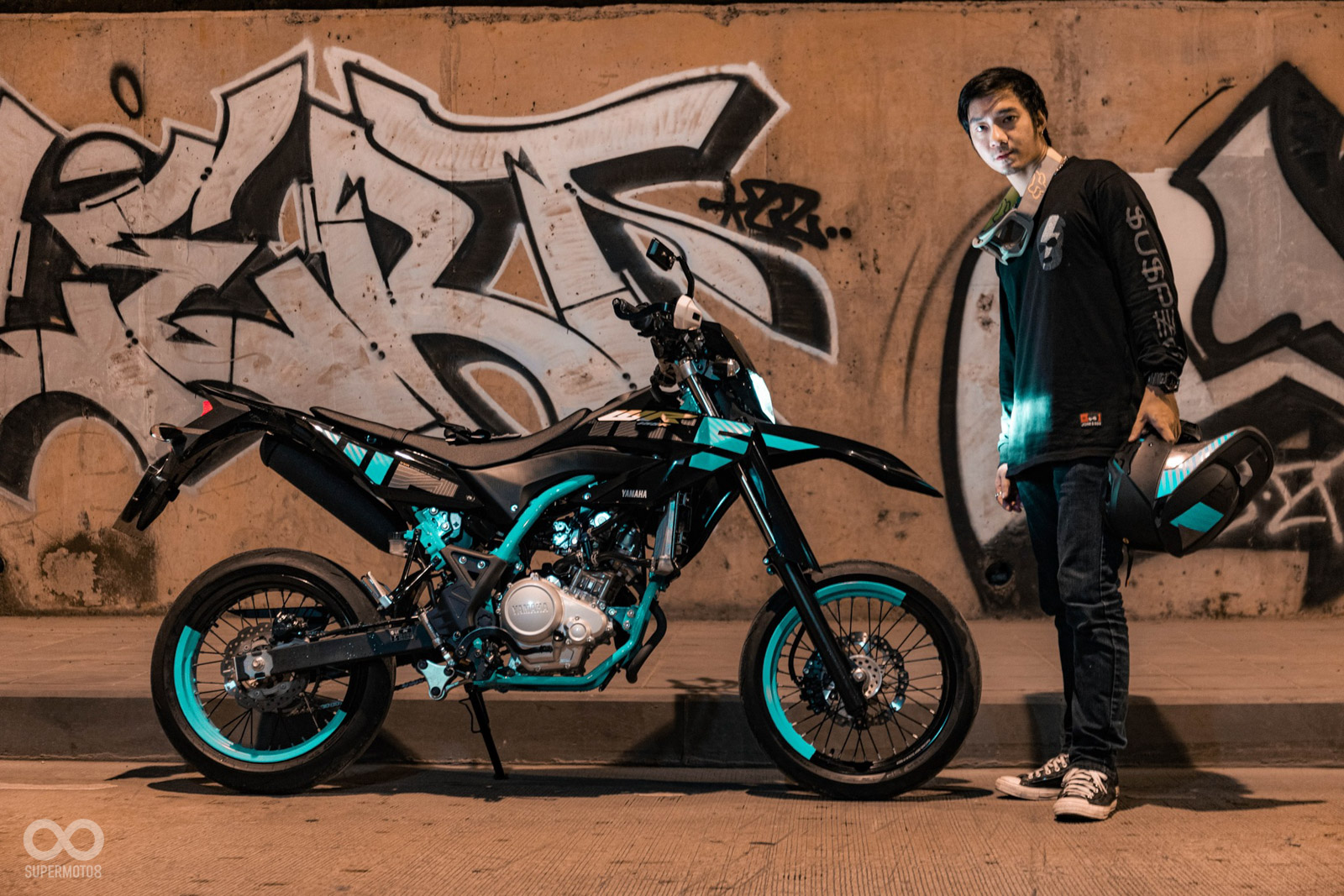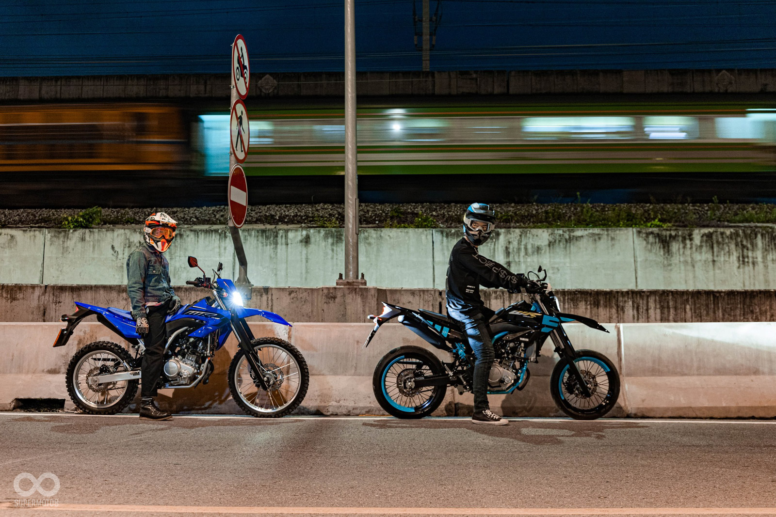 首先從WR155R的外形看去,粗曠簡潔的外觀一目瞭然,大面積的鴨舌土除,以及修長的車型早已為越野車的身分驗明正身,但除了玩土外,本次YAMAHA特別拍攝安裝前後17吋框的滑胎版本,搭配傳承自R15的155c.c. VVA引擎,產生16.5ps馬力和14.3 Nm的充沛扭力、KYB 41mm正立式前叉、五段預載可調的單槍避震器,加上原先越野取向造就的輕盈體態,想必改裝後能夠輕易成為都會小霸王。