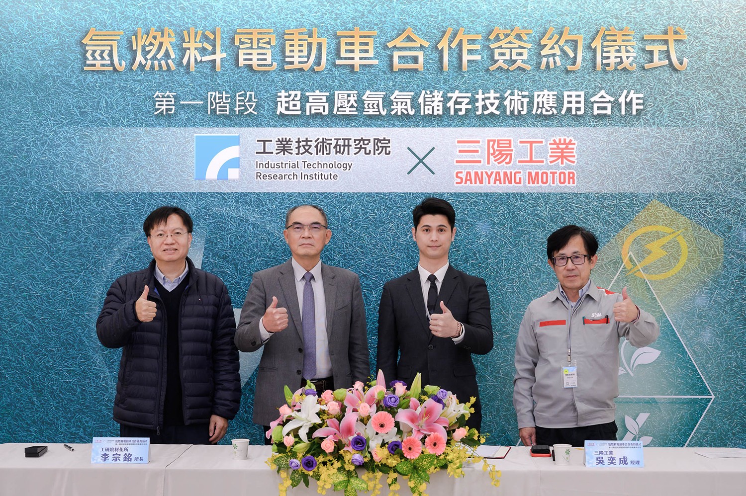 繼二輪油車市占率重回第一寶座,三陽工業於研發領域持續不間斷,1月16日與工研院舉行簽約儀式,宣告雙方正式合作氫燃料電動車技術開發,於創新能源載具領域邁出第一步。第一階段雙方將針對超高壓氫氣的儲存技術共同研究、設計與開發,並將此技術使用在氫能源電動機車上。