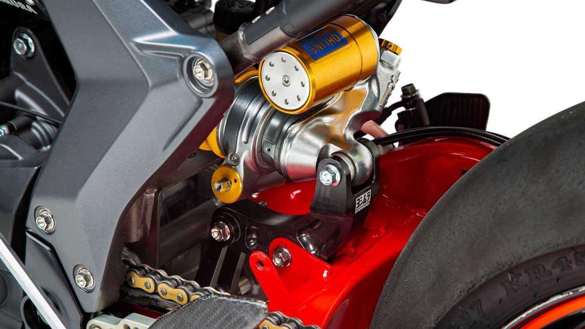 而就算車輛有著強大的動力,少了轉向靈活性,也無法在賽道中獲得出色的表現,透過吉村的搖臂軸承套件,車手可調整後搖臂角度增加或減少 1.5mm,雖然從文字上看起來差別不大,但實際上造成的改變非常明顯,可使車輛獲得更大的轉向傾角;而再搭配上後懸吊連桿套件後,則使車輛的穩定性提升,讓車輛獲得更加線性的懸吊反應。