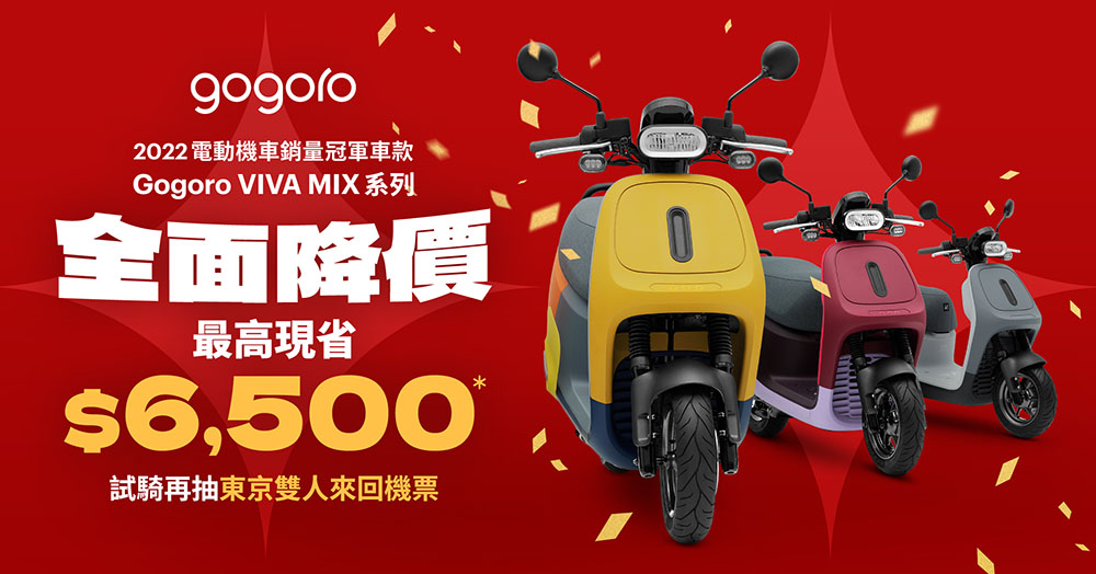 全球供應鏈逐漸回穩,Gogoro 看好今年電動機車市場成長動能,於開年搶先進行策略性調整,讓消費者即時享受最有感的購車福利,宣布即日(31)起,2022 年電動機車銷售冠軍 —— Gogoro VIVA MIX 全系列全面降價,最高現省 $6,5001!還有多重優惠同步登場,減輕擁車負擔,加碼再享安心保障。
