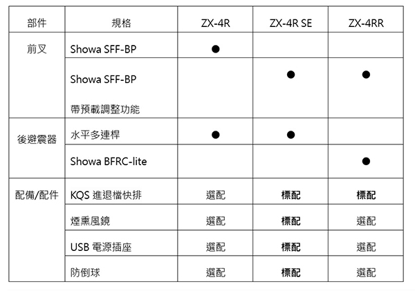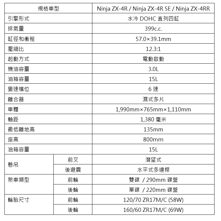 Kawasaki Ninja ZX-4R 車系規格