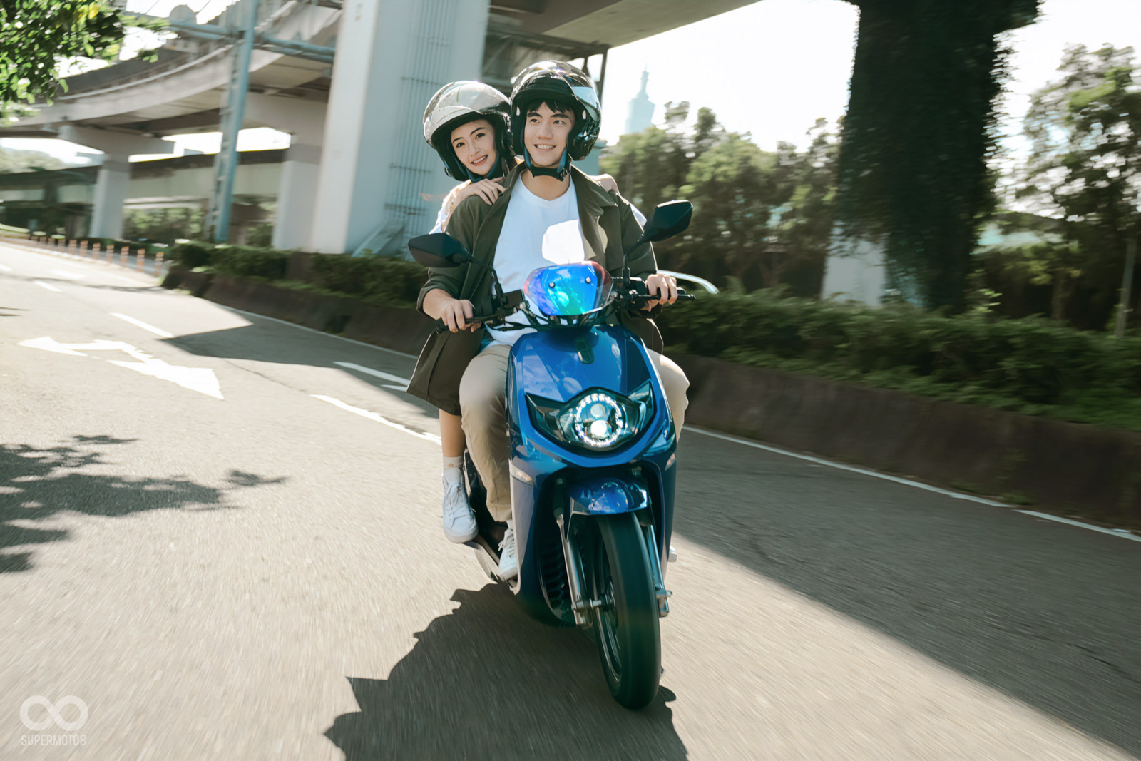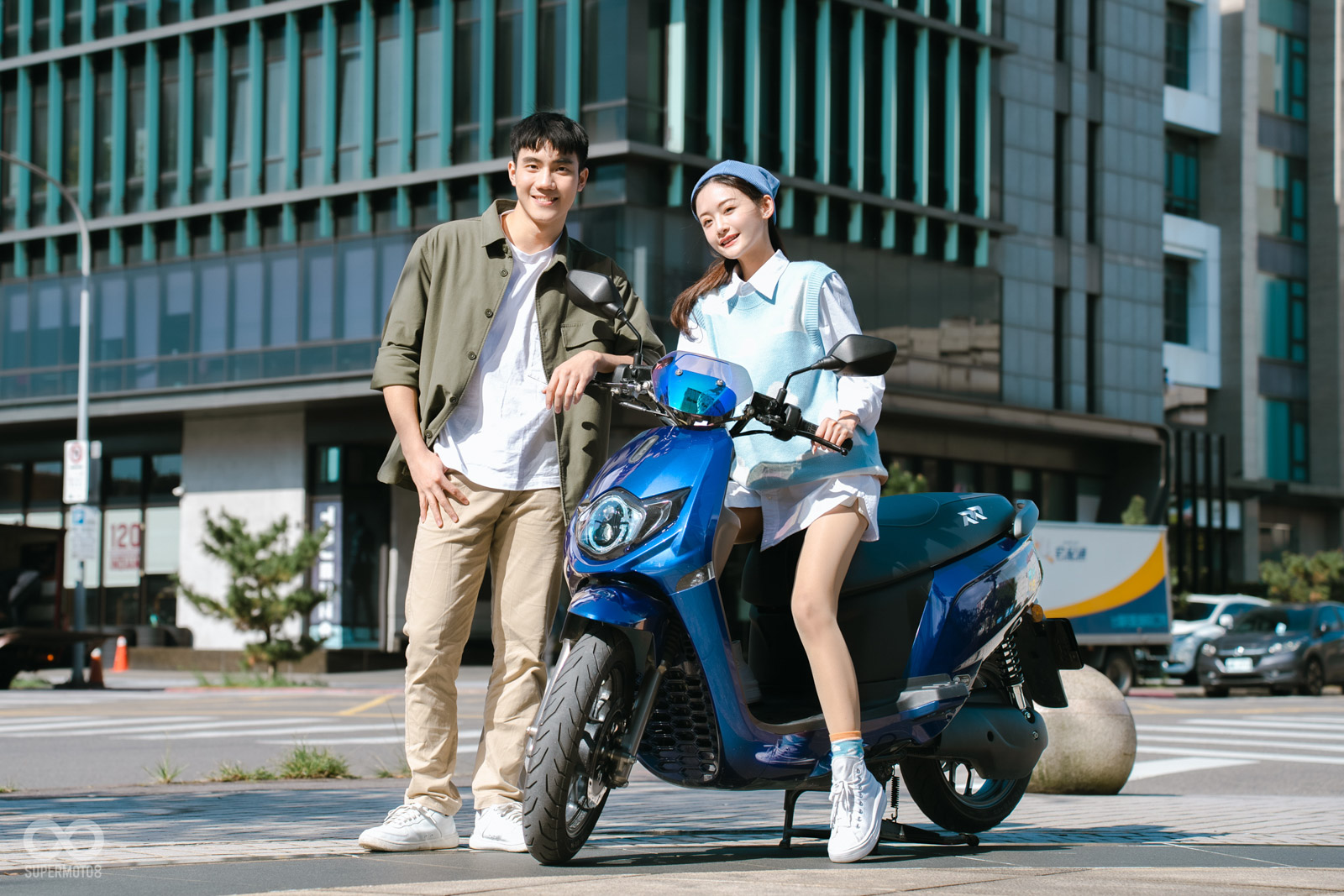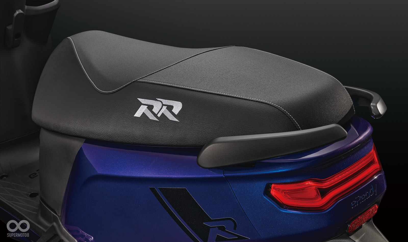 旗艦性能車款「eReady Run 76 Belt」,搭載高功率 7.6kW 馬達,充沛的動力加上精準的操控性,挑戰電動車的極致駕駛性能。新車色「藍紫悍」採用變色龍塗裝,為了強化一眼瞬間的視覺感受,新色「藍紫悍」以藍色為基底的藍鈦色彩,透過不同角度及光線逐漸變化為紫色。同樣搶眼的還包含侵略型 LED 雙魚眼前大燈和前飾板的肌肉線條以及幻彩電鍍風鏡;帥氣且個性化的「RR」跑格坐墊搭配跑格化車縫線,並加強了坐墊的支撐性及防滑的皮紋,讓整台車更見跑格,更是巔峰性能的象徵。