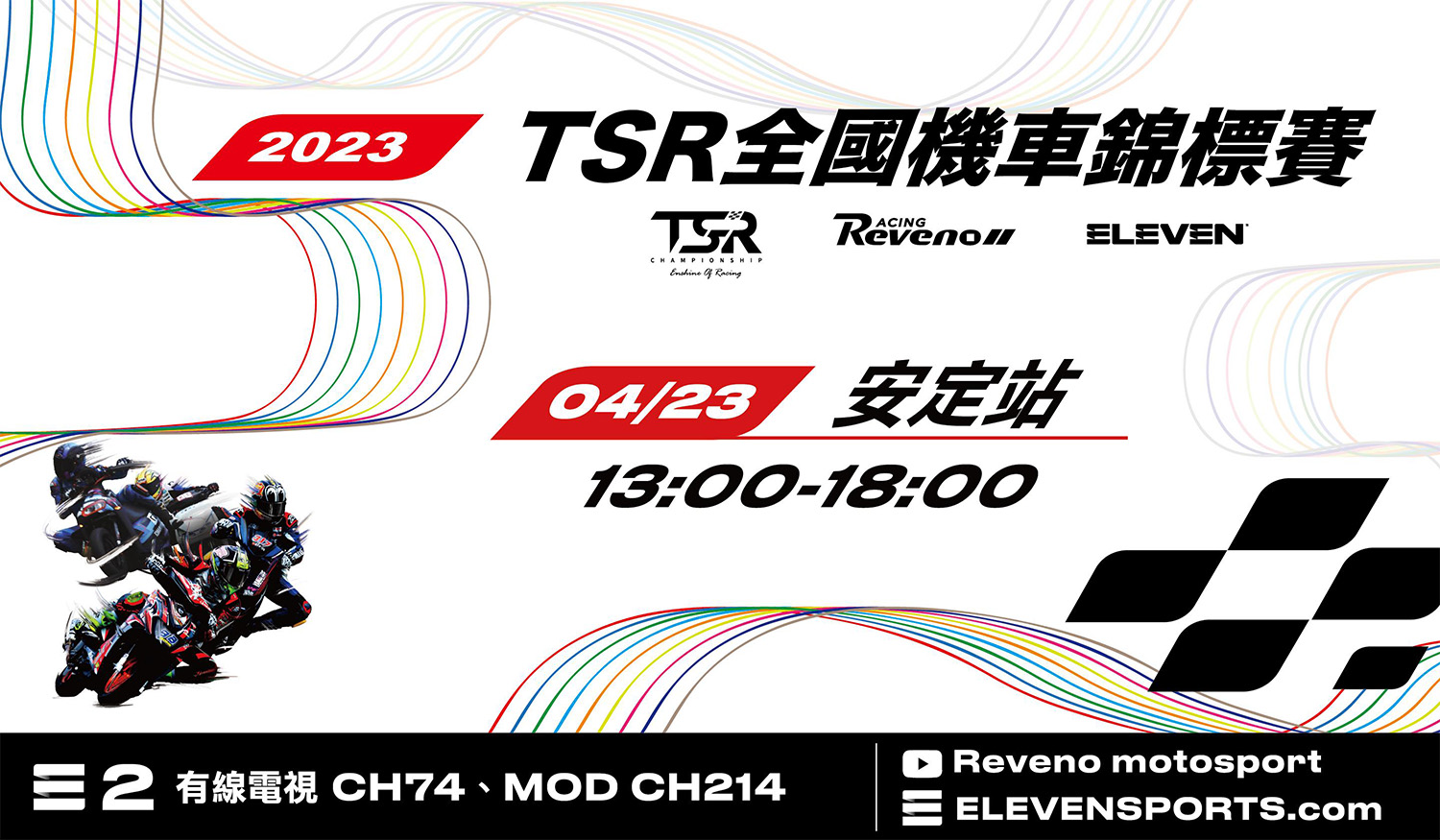 4月23日當天「統一7-ELEVEn獅隊」專屬啦啦隊Uni Girls受邀擔任表演嘉賓,妮妮、yuki、Mina、Maggie、Joy、瑟七將到現場一起共襄盛舉,感受TSR全國機車錦標賽魅力,ELEVEN體育家族轉播團隊也將派出專業主播張鎮麟及資深TSR賽評曾冠智、場邊記者徐莉婷再次攜手搭檔,播報精彩熱血的機車運動賽事,想一睹各車隊及選手的精采表現,4月23日下午一點起請鎖定有線電視ELEVEN體育二台、MOD214台、ELEVENSPORTS.com(官網/OTT)以及TSR協辦單位Reveno motosport YouTube頻道現場直播。