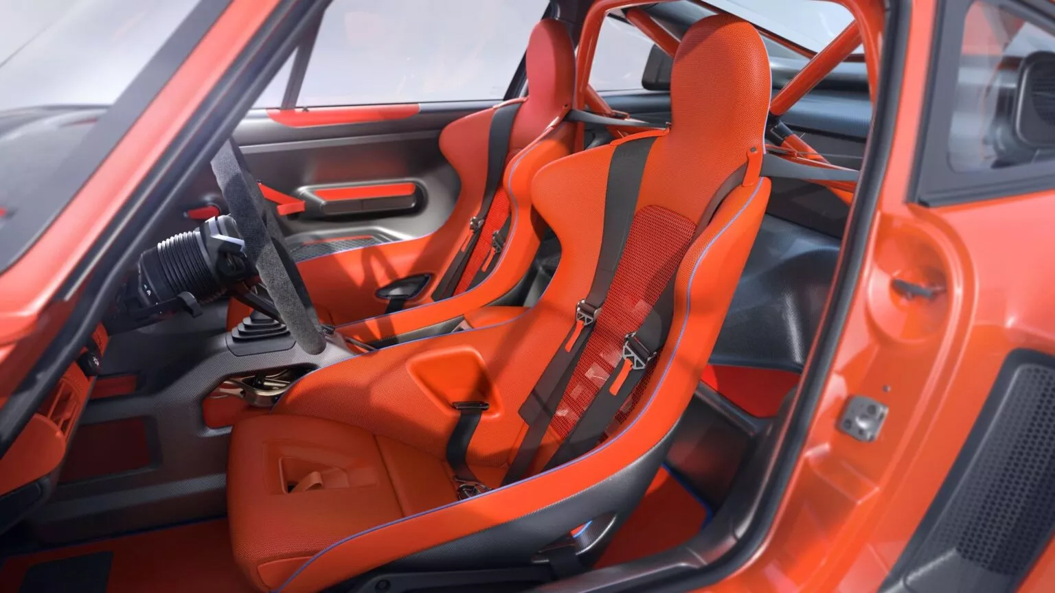 車頭前唇和車尾下擾流讓車身長度增加約300毫米,使得讓這兩款版本車型從前45度視角望去相當驚人,從車尾後方看去也極其瘋狂,從中可發現兩者都有點神似1980年代G系列911。兩者的內裝同樣引人注目,因應不同版本車型在用料、顏色和配備有所不同,但兩者都配備了包覆性極佳的賽車座椅、1980年代的五環儀錶板、三輻式方向盤、左邊傳統鑰匙啟動等。