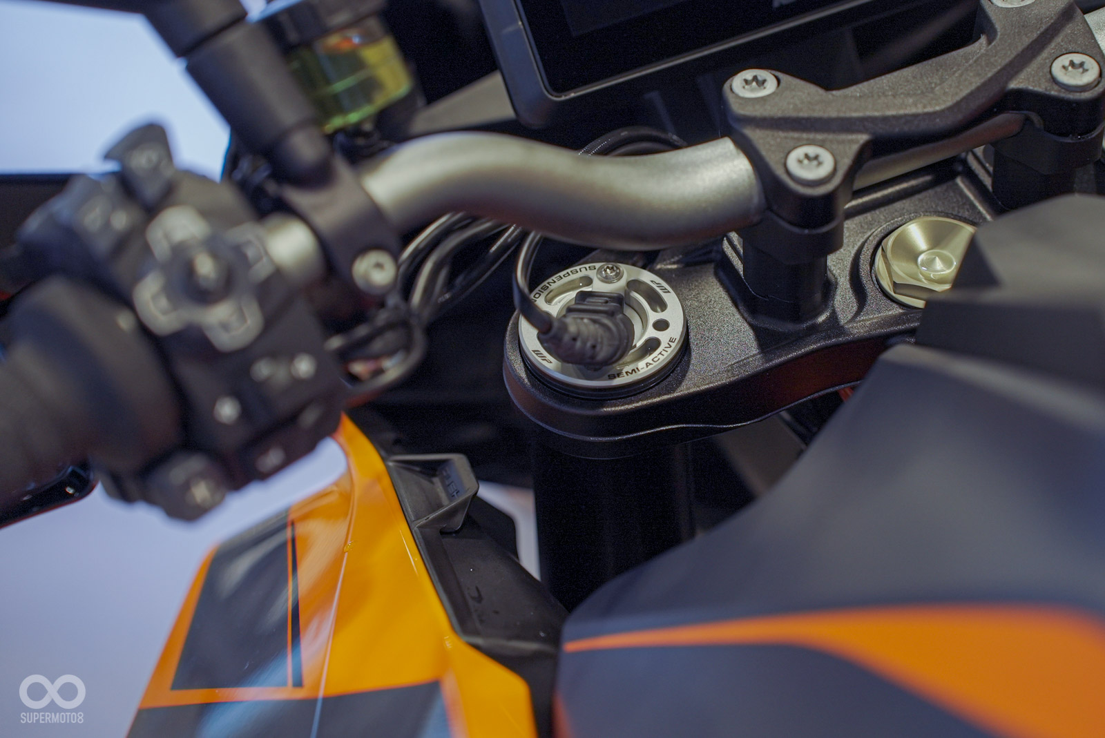 硬體規格方面,890 SMT繼承了源自890 ADVENTURE R的諸多好料,懸吊部分採用WP APEX 43mm前叉(壓縮、回彈可調)配WP中置單槍後避震(預載、回彈可調),前後行程皆為180mm;煞車為前雙輻射卡鉗搭配320mm碟盤、後雙活塞卡鉗與260mm碟盤;車重也僅有194公斤,座高則為860mm。