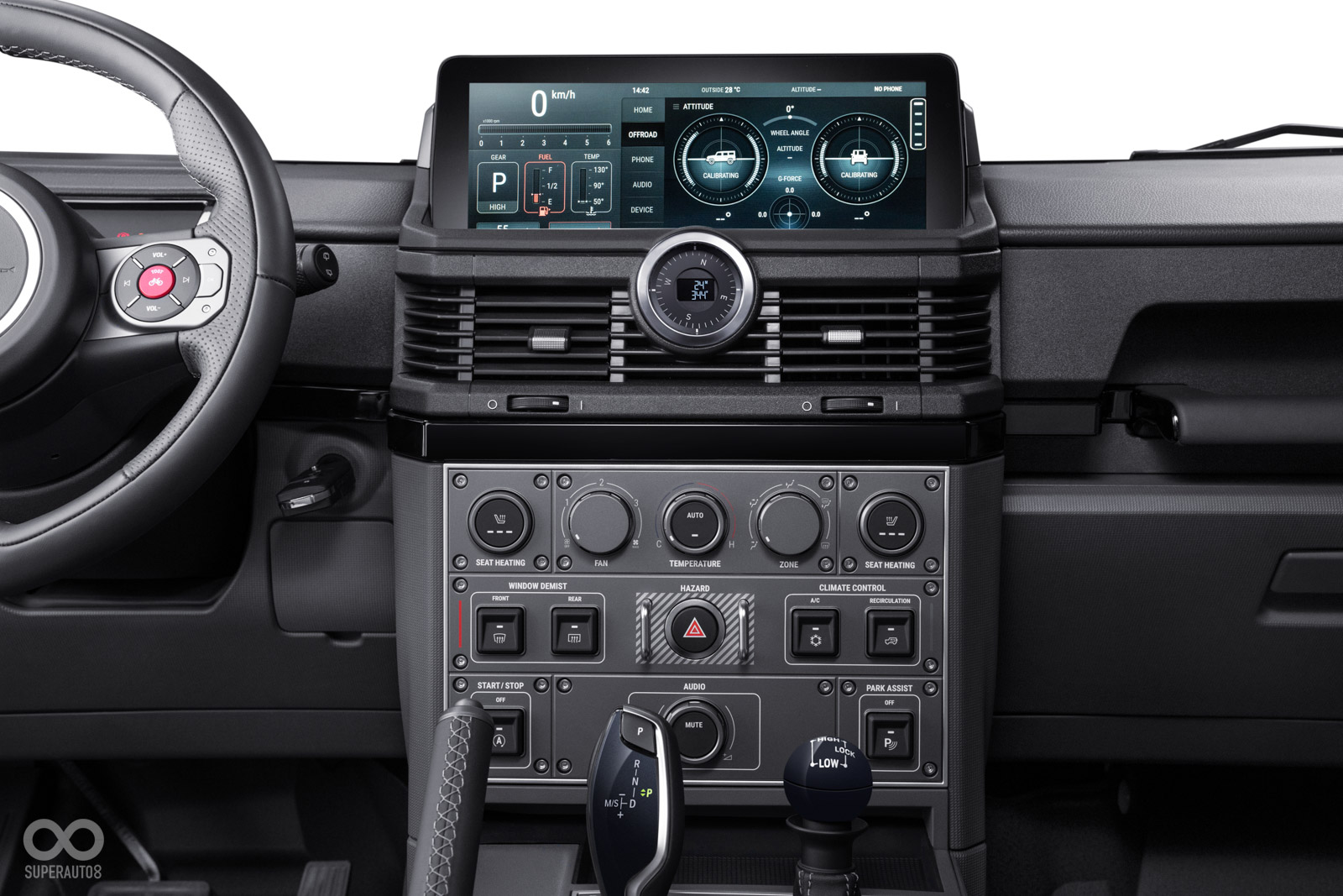 在內裝設計上,Grenadier 自是有其風格獨具之處,緊扣品牌 Built on Purpose 設計理念,僅 保留必要的控制按鈕元件,刻意加大所有實體按鍵間距,顛簸路面行駛或配戴手套時操作也直 覺合理,更可於機艙式頂控面板切換越野、涉水模式設定,同時預留前後差速器鎖控制面板、 外接電源控制開關組位置,符合加裝拖車勾、絞盤、探照燈等配備所需。車室中的抗水級內裝 及可拆式耐磨排水地板,若遇泥濘覆蓋也可輕鬆沖洗。RECAROTM 座椅優秀的包覆力提供駕駛 良好的支撐力和舒適性,無論征服崎嶇山路或是公路行駛都安全無虞。Grenadier 獨特 30/70 分離式尾門設計,即便連接拖車或身處狹窄區域都能輕鬆開啟,1,255L 寬敞方正的後車廂儲 物空間搭配收納固定配件,只管盡情堆疊旅行所需,另可選配 Safari 獵遊風格天窗、羅盤高 度計、Nappa 皮革或復古苯染馬鞍皮革包覆方向盤等多元配件,打造獨具個性的專屬座駕。