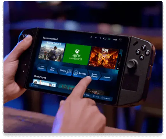 這款受到Switch啟發的掌機配備了一個8.8英寸的QHD+ 16:10螢幕,具有2560x1600的解析度和最高144Hz的螢幕更新率,內部則是使用Windows系統,可與Xbox Game Pass搭配使用,提供海量的遊戲給玩家;可拆卸的Joy-Con搖桿對許多人來說是焦點。