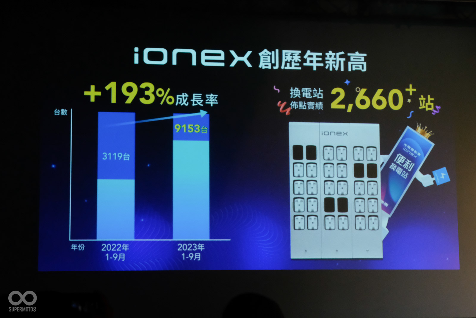 Ionex秉持以以服務滿意為主持續精進的精神下,Ionex現在已經建立超過2,660座換電站,同時相較去年1-9月銷售量,今年已經累積193%的驚人成長,而針對對手近期強打的66折點數折抵、帳單優惠,Ionex舉例今天推出i-One Air入手優惠12個月免費騎到飽,是更有感的促銷方案。