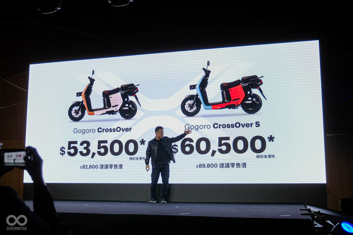 Gogoro CorssOver本次在標準版上總共有沙地白、夜嵐灰兩種顏色選擇;高階的S版則提供迷霧紅、山岳黃、沙地白、夜嵐灰總共四種車色選擇;售價方面,Gogoro CrossOver的建議售價為82,800元、Gogoro CrossOver S的建議售價則為89,800元。