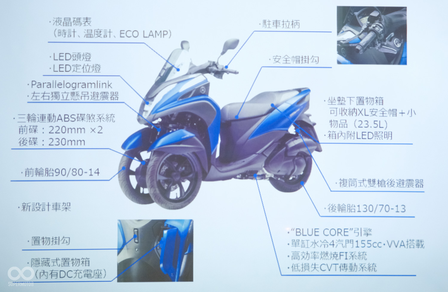 A.其實在發表之前公司內部就已經著手規劃,Tricity155預計六月上市,在上市前YSP與YMS等經銷據點都將會接受完整的Tricity155的相關教育訓練。