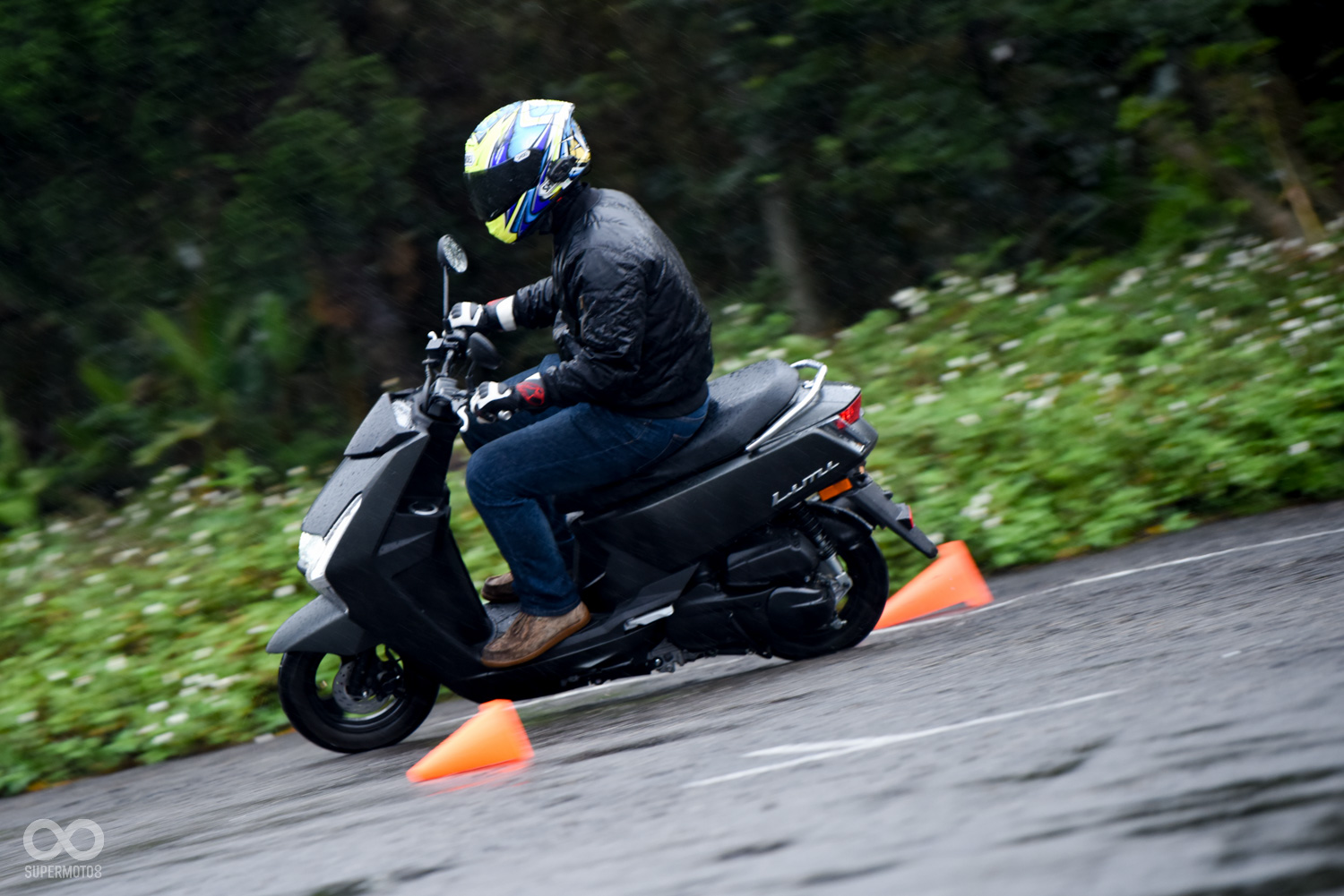 操控性方面不到100kg的車重,與1185mm的短軸距以及10吋的小輪徑,在這樣的組合之下靈活是必然的答案,但在這下著陣陣細雨濕滑路面上,也僅能簡單的點到為止,Limi的前後懸吊設定偏向舒適,在行經不良路面時抑震效果良好,但在激烈操駕時就會有些力不從心。