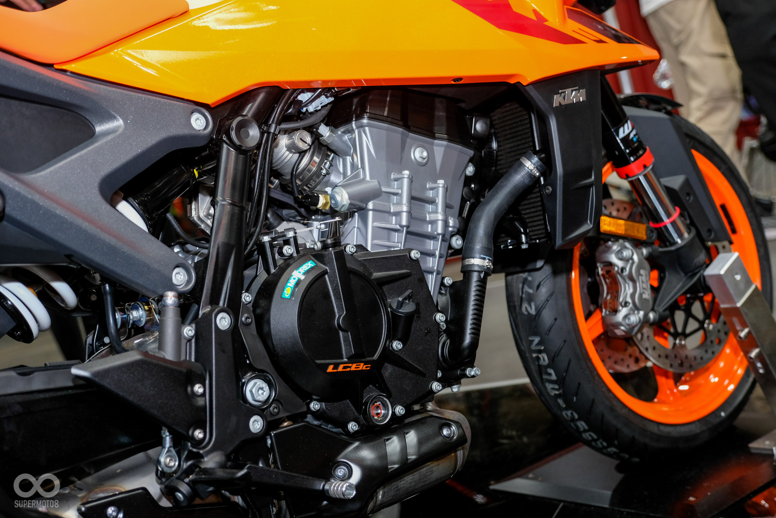 動力由KTM 890 DUKE R中的LC8c引擎經過大幅升級。具有947 c.c. 排量的KTM 990 DUKE的心臟擁有新的活塞、曲軸和連桿,產生123匹馬力和103牛頓米的扭矩,而整車僅重179公斤。