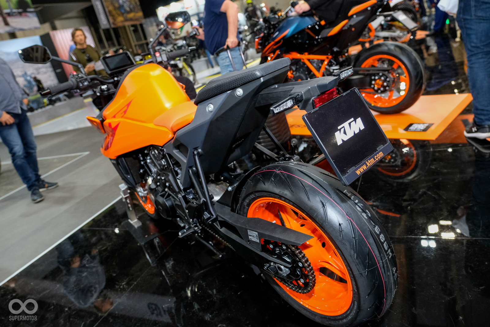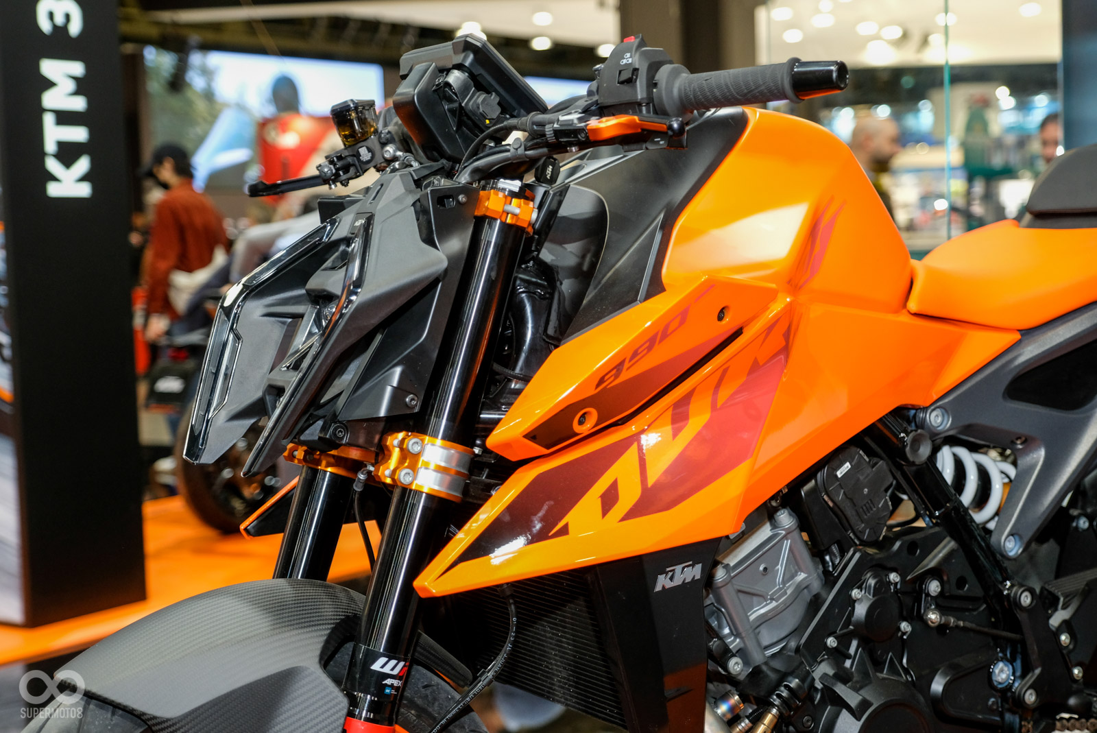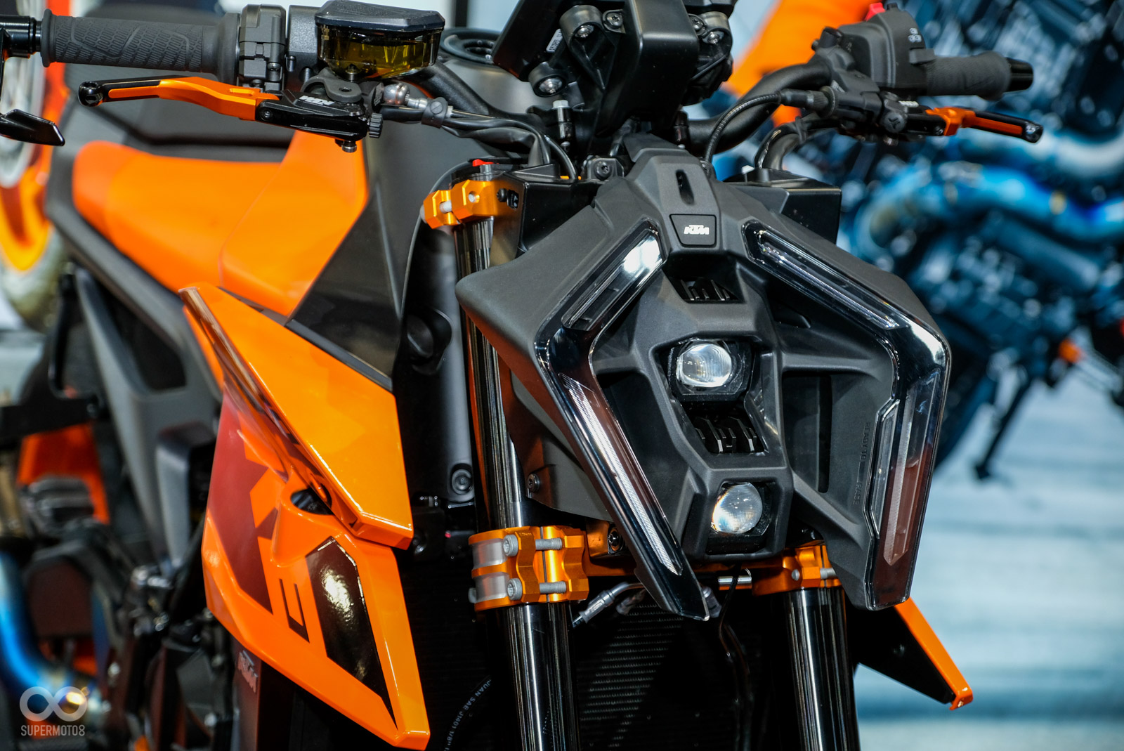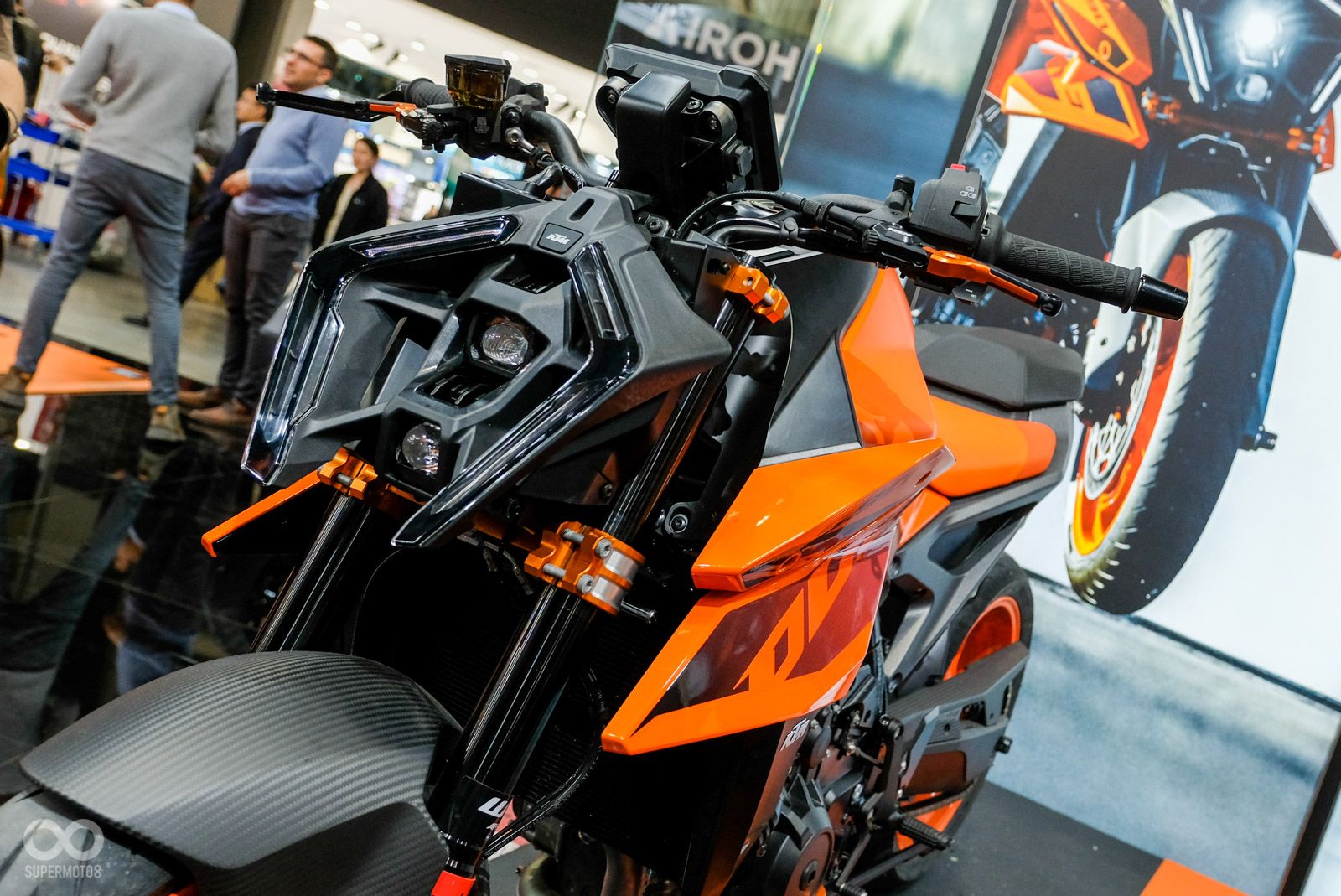 KTM 990 DUKE外觀設計以定格畫面中的爆炸概念為基礎,捕捉了極端能量即將釋放的瞬間。這種設計進一步增強,有如將吞噬道路的超狂頭燈造型,真的令我在車展現場讚嘆許久!KTM 990 DUKE也將提供黑色和電動橙兩種顏色選擇,後者特別為慶祝DUKE的30周年而設計。