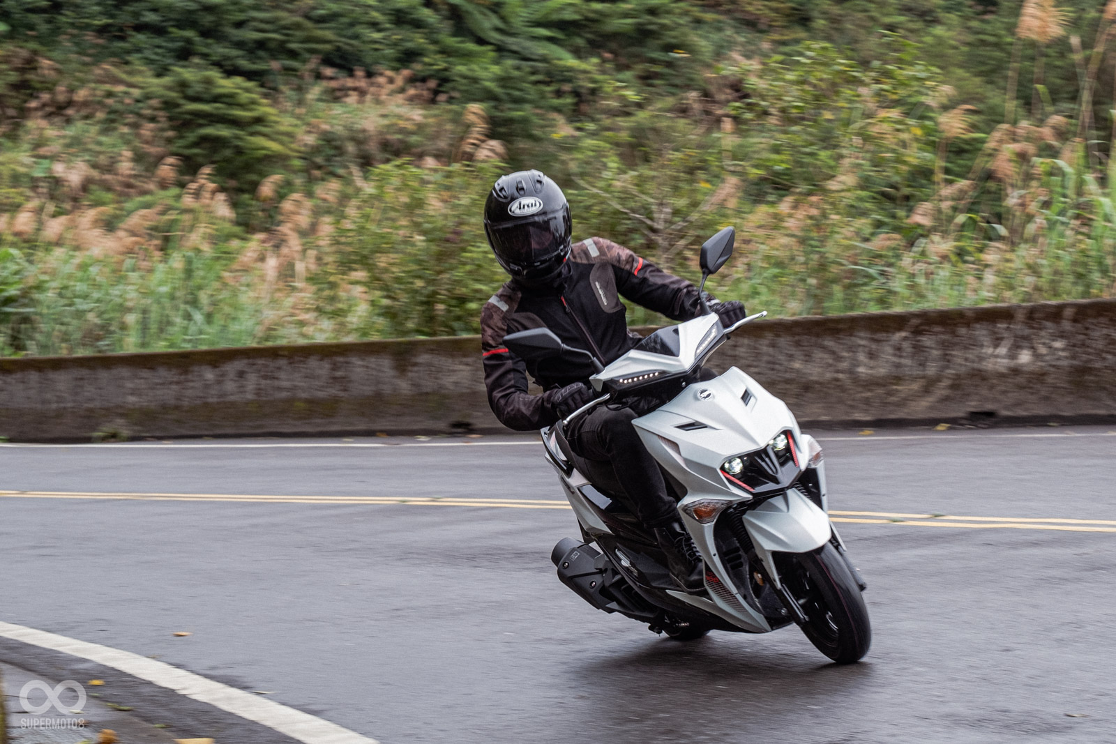 同時因為過往賽場上的優異表現與不斷進化,轉向感受更是令人驚艷,面對台灣的山路環境中,JET SL+輕盈的車頭動態與1,290mm短軸距互相搭配下,靈活的轉向感面對彎道可以立刻傾倒車身,而且所有的反應都用超快的速度一氣呵成,彎中更可以穩穩地守住路線,隨著逐漸拉正車身,加大右手油門開度,敏捷的加速就像是獵豹般衝出彎道,迎接下一個彎角。