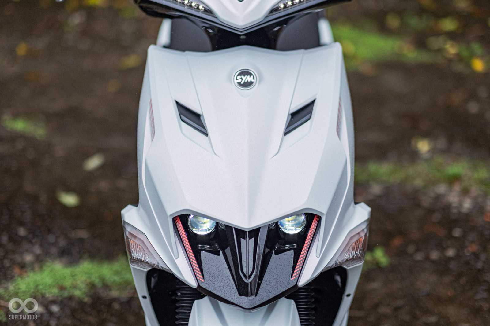 這次的主角JET SL+的升級之處可不只是把DRGBT的引擎裝上去,這麼簡單而已,首先在外觀部分SYM依舊保持超高辨識度的雙魚眼設計,彷彿有人正用力注視你的視覺感受相當兇悍,同時外露式的魚眼燈組也是相當特別的呈現方式。