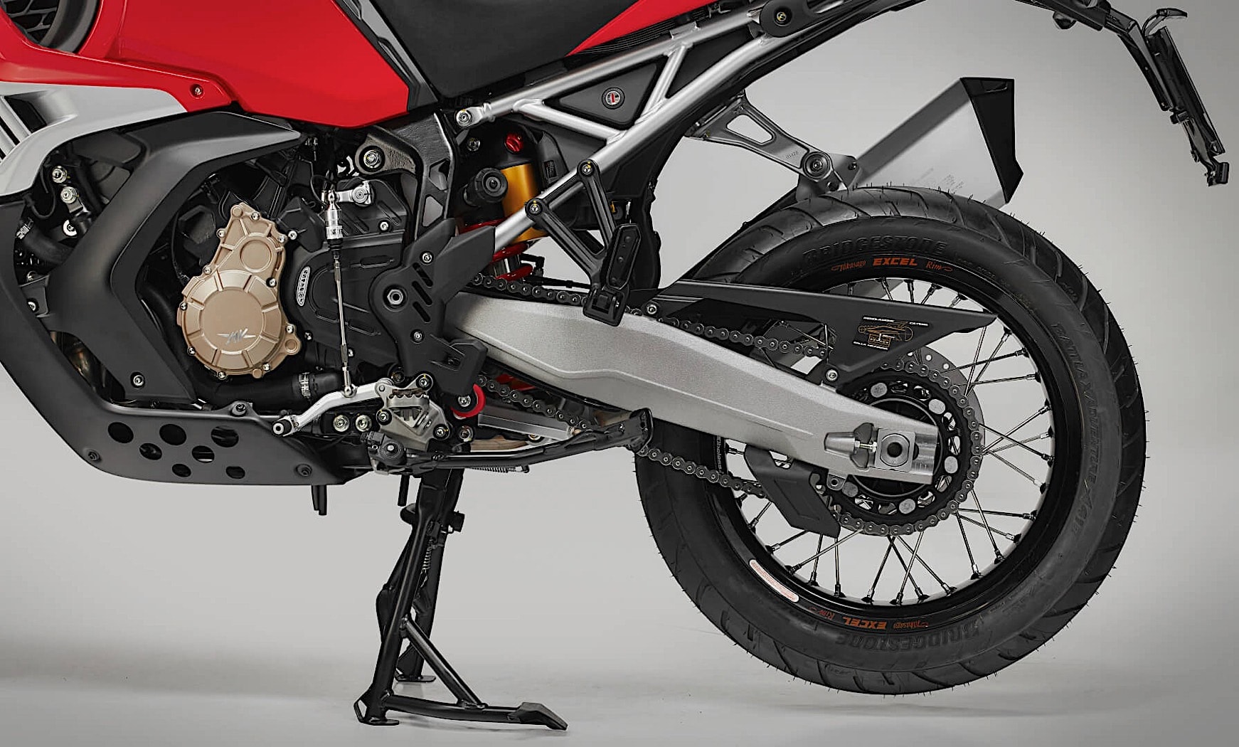 懸吊系統部分,配置的是可調式Sachs的前叉,而後方則是Sachs單筒避震器加上鋁合金搖臂,輪胎則是配置前後21吋的Bridgestone普利司通Battlax輪胎,輪框也採用鋼絲框的設計,在車頭還有整流罩的配置,用意是在減少高速時所產生的亂流,而儀表則是搭配7吋的TFT螢幕傳遞資訊,並且支援藍牙和Wi-Fi連接功能,透過MV Agusta的MV Ride手機應用程式連接車輛,讓導航系統可以發揮最大用處。