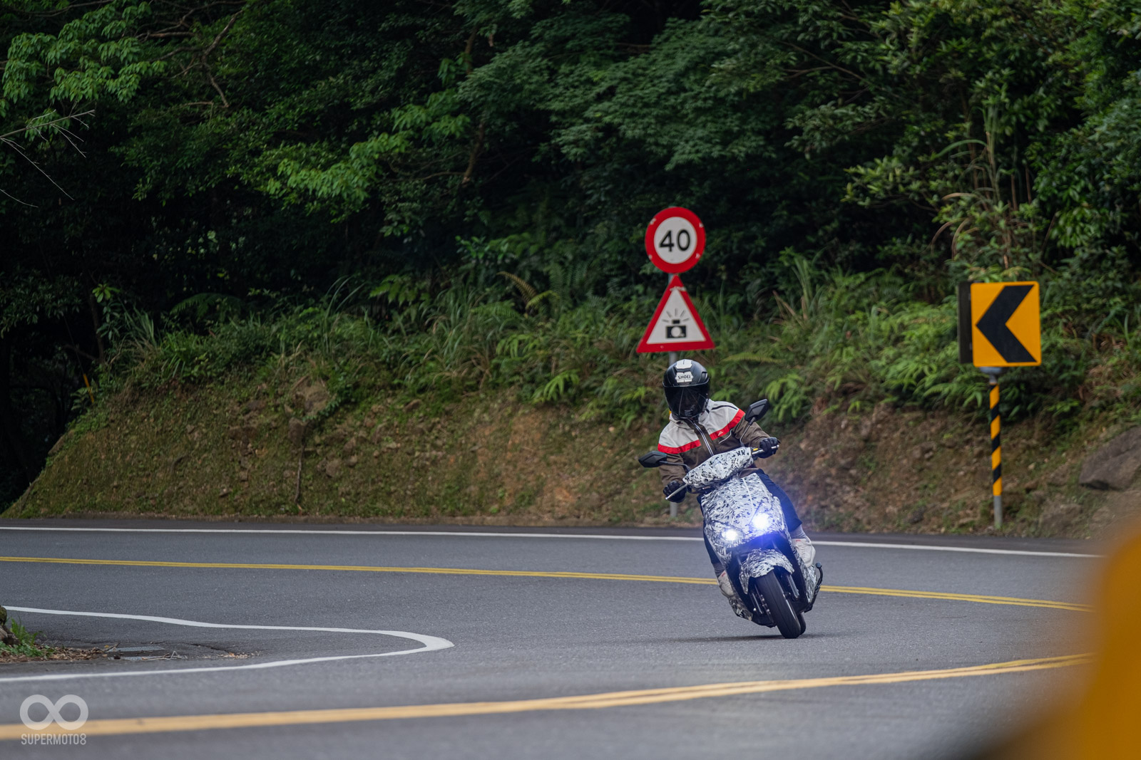 礙於KYMCO RTS還沒有正式上市,所以這次超特別的搶先評測體驗需在偽裝下進行,過程中也接受到路人滿滿的視線關懷,停紅燈時更有超多騎士搭訕打探新車資訊。偽裝下外觀我們無法進一步窺看RTS的更多細節,唯獨可看出車頭燈採用分離式雙燈設計,不論是前車殼或者龍頭前方部分,皆可以看出尖銳、層次感風富的線條暗藏其中。