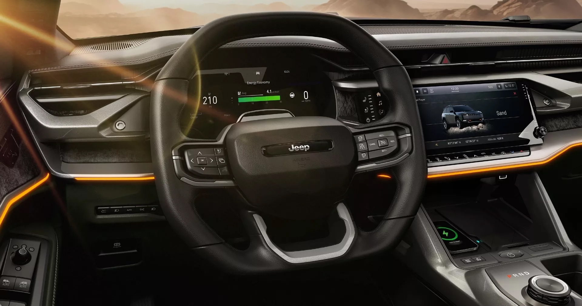 駕駛者前方有一個全新八角造型方向盤,Jeep表示這款方向盤有兩個主要功能:圓形輪廓易於在任何地形上進行操作,刻意在9點和3點位置設有戰術靈感的握把區域,以增強越野駕駛體驗。目前仍不清楚這款概念車是否會量產,更重要的是其價格會是多少,預計不便宜,且會高於Wagoneer S的71,000美元。