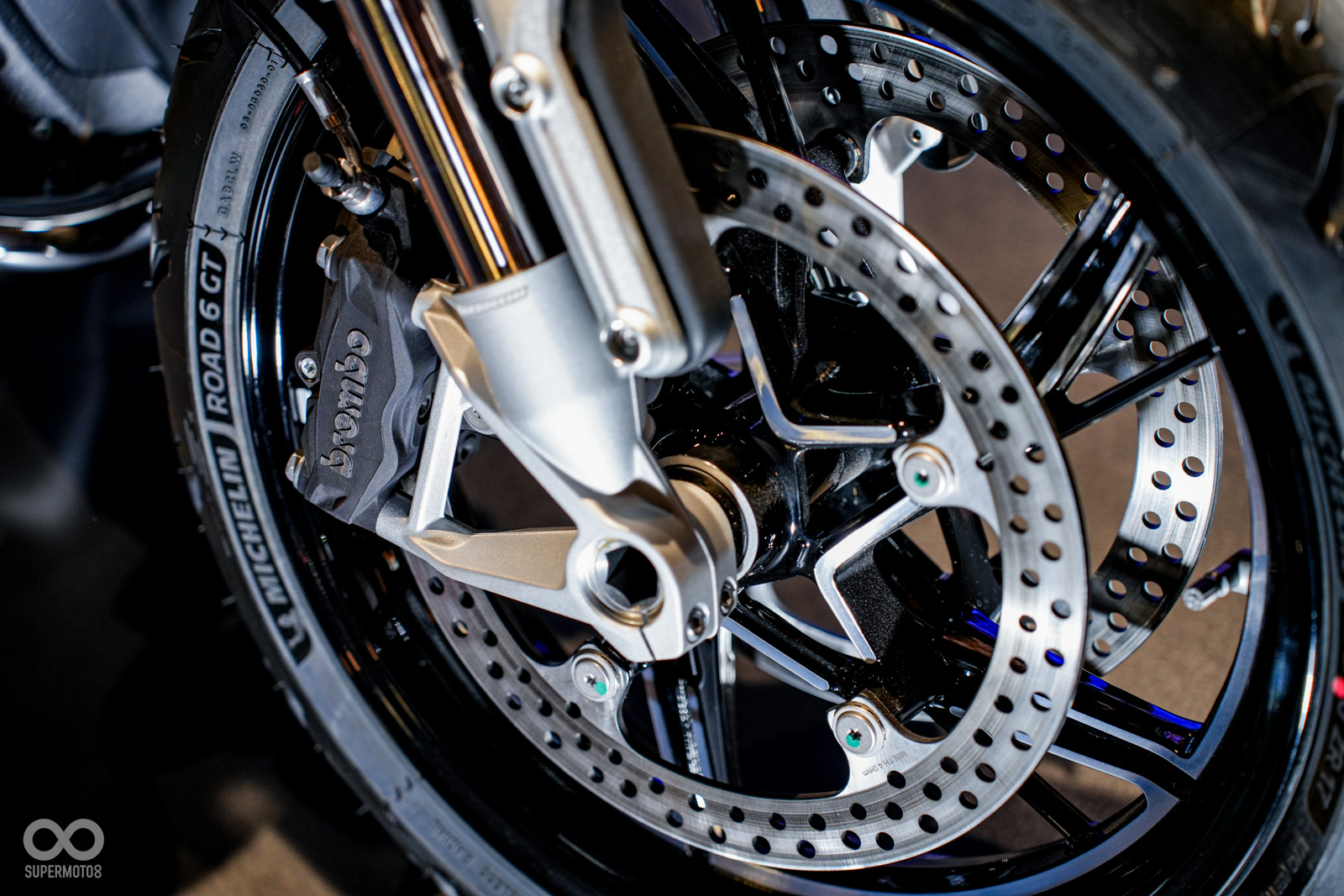 懸吊方面,R 12 nineT標配45mm倒立式前叉,具備預載、壓縮/回彈阻尼可調,後懸吊則採用Paralever單搖臂後避震,具備預載、回彈阻尼可調;煞車部分,前煞搭載輻射對四卡鉗配310mm雙碟,後煞為雙活塞浮動卡鉗配265mm單碟。