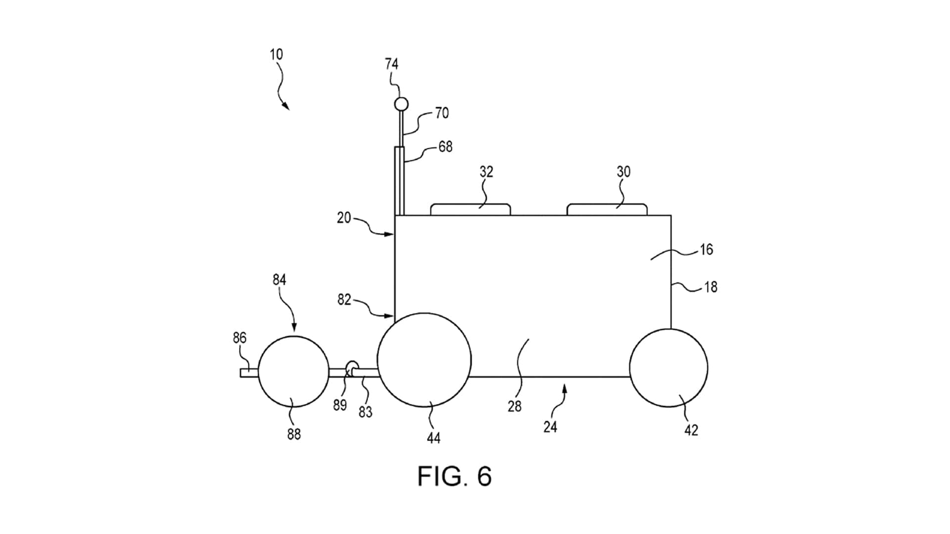 這份名為「移動裝置」的專利描述了一款放大版的 MotoCompacto,擁有兩個座位和四個輪子。乍看之下,你可能會疑惑,這不是我們熟悉的二輪電動速克達吧?但請耐心看下去,因為它的設計、科技和操控方式都與 MotoCompacto 大同小異。
