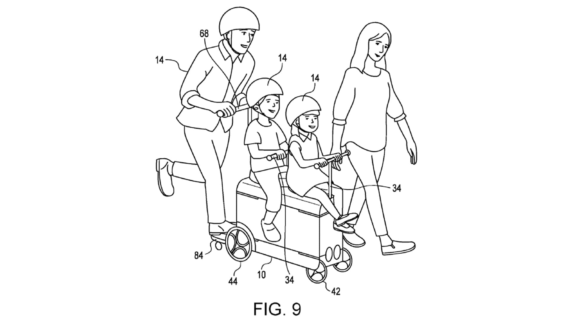 專利也提到,在城市裡開車停車很貴,大眾運輸大多只能到達特定地點。而 Honda 的解決方案是:減少等待交通工具的時間,避免孩子步行長距離;「移動裝置」追求緊湊的設計,可以收納於公共交通工具內,並配有電力輔助馬達,讓全家在城市裡暢遊。