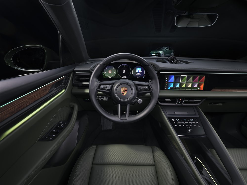 隨著Macan的電動化,保時捷為這款頗受歡迎的SUV車型導入全新的顯示與控制系統。保時捷駕駛者體驗設計概念(Porsche Driver Experience)結合數位及類比元素,其中包括12.6吋曲面數位儀錶板、10.9吋乘客資訊娛樂顯示螢幕、搭載擴增實境技術的抬頭顯示器,以及具備互動照明功能的環境內裝照明(氛圍燈)。保時捷再度全面升級所有 Macan 車型的螢幕設計,包含迎賓動畫、全新的現代化外觀,以及新的主題應用程式提供12種顏色調整顯示器背景顏色與氛圍照明模式,以搭配車身外觀顏色。