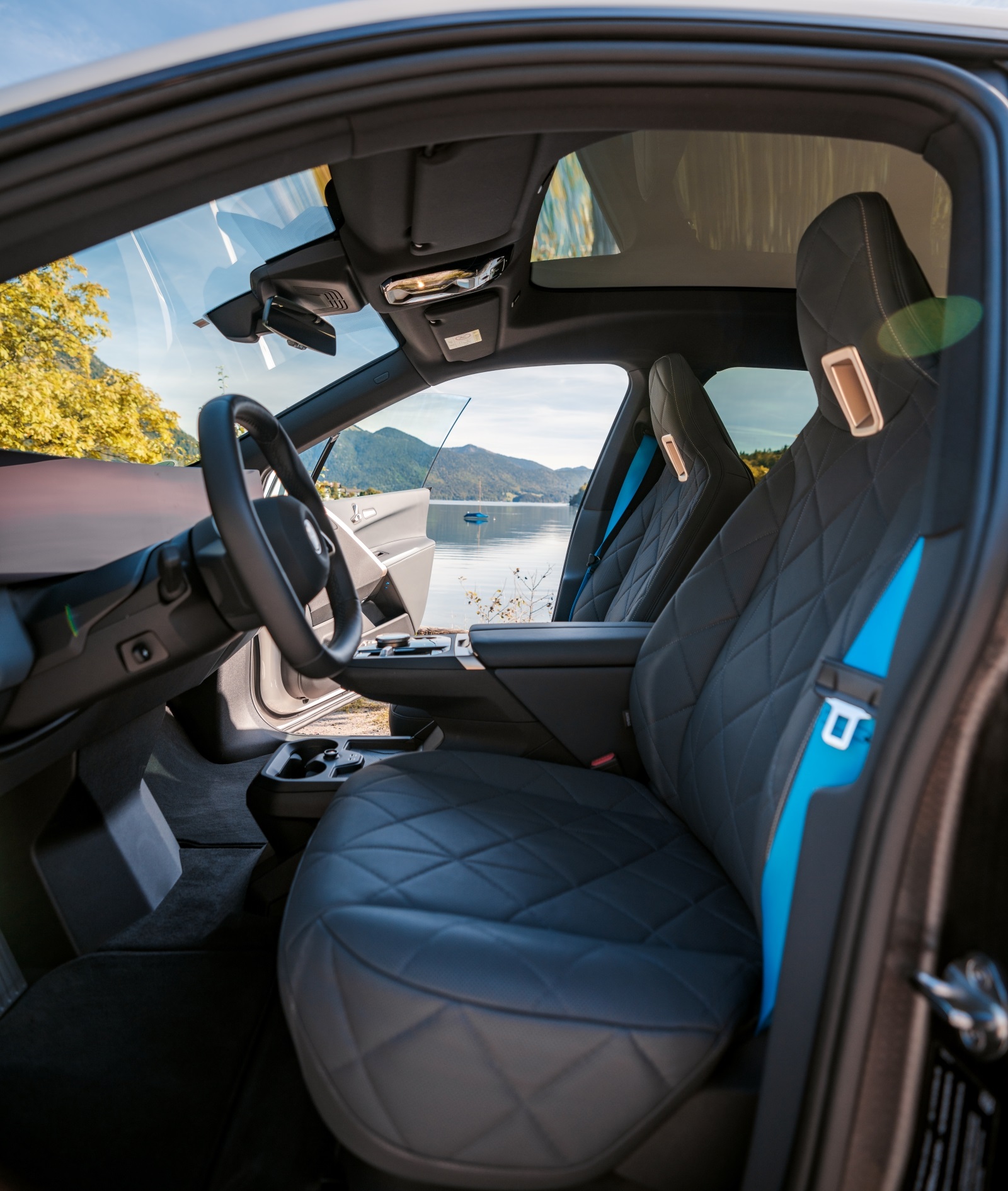 座艙空間則以頂尖質感細膩刻劃,透過一體式造型座椅搭配全新由咖啡所鞣製的天然真皮材質、豪華型四區恆溫空調、頂級水晶內裝套件、FSC認證天然木紋飾板、30具揚聲器最大總輸出達1615瓦的Bowers & Wilkins沉浸式4D頂級音響系統與BMW電控調光全景式玻璃車頂,結合車門自動緊閉系統、雙前座通風座椅與雙前座加熱座椅,為全新BMW iX勾勒出恣意開闊、猶如頂級豪華家居的舒適空間,隨時入座都能享受無比的放鬆與舒坦。