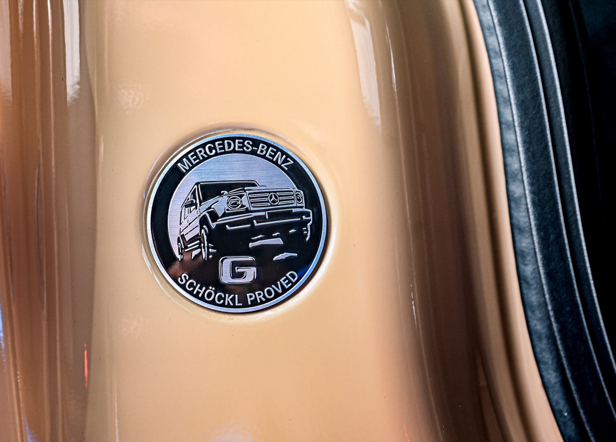 奧地利Schöckl山脈認可的傳奇血脈,除了鑲嵌「Schöckl Proved」的印記,經典傳奇形象更深深烙印在越野玩家心中,G-Class這45年來堅持只做一件事,就是將「越野」發揮到極致。保留多項經典元素至今,全新G500與G450d完美傳承純粹的硬派外觀,僅在部分設計進行微幅更新,例如水箱護罩設計由三橫柵改為四橫柵式樣,整體前保桿進氣壩由寬扁造型改為方圓外觀設計,強化G-Class豪華越野風範。而全新A柱設計與車頂側緣造型,則有助於提升空氣力學與減少風切聲,大大提升舒適性。