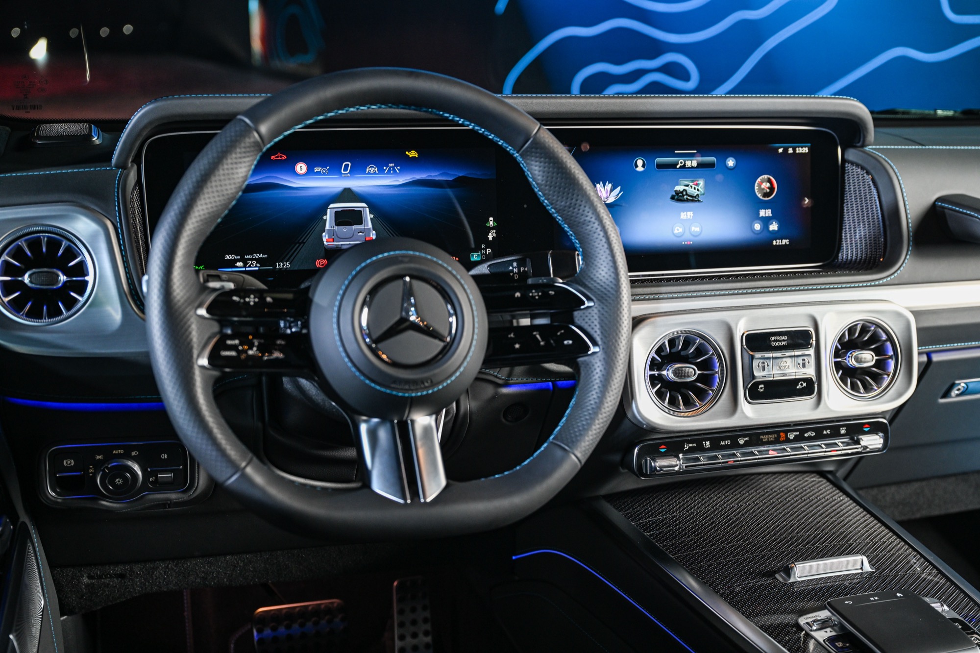 開啟車門的機械聲響依然令人著迷,但有了Keyless-Go的支援更加從容,進入全新G-Class駕駛艙,居高臨下的視野與科技豪華配備加乘,以數位化打造有別以往的越野風格,包含雙12.3吋高解析度數位儀錶及觸控螢幕,搭配新一代MBUX多媒體系統,提供更為直覺的人性化介面,原廠導航系統提供擴增實境功能,利於駕駛在複雜的路徑中快速地找到前進方向。能夠流暢對談並予以協助的智能語音助理,在全新G-Class上更是便利。