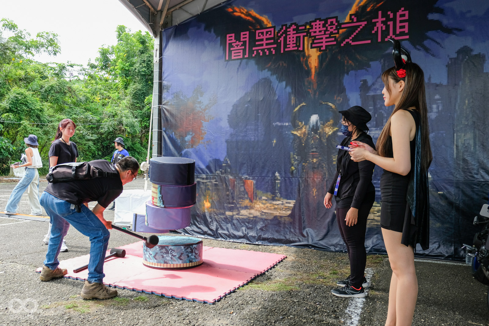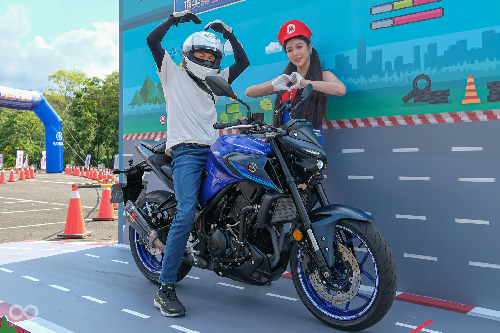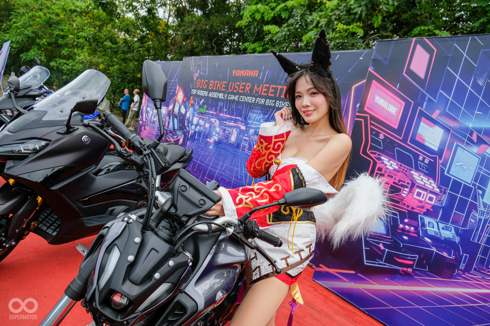 2024年YAMAHA重機大會師選在雲林的劍湖山世界主題樂園舉辦,今年活動主軸以「經典電玩」作為主軸,將YAMAHA的重機世界與電玩元素結合,一入場的車友拍照區就可以看到滿滿的電玩元素,ShowGirls打扮也特別呼應這次的主題與車友互動。