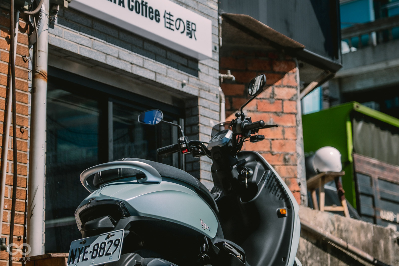 KYMCO 優格125 拜1,220mm的超短軸距所賜,因此優格125 看起來只能用「超迷你」三個字來形容,面對通勤的都會區或停車格,甚至我們拍攝的巷弄咖啡廳,優格125 絕對可以立刻展現出過人的優勢,輕鬆面對所有艱困的停車環境。