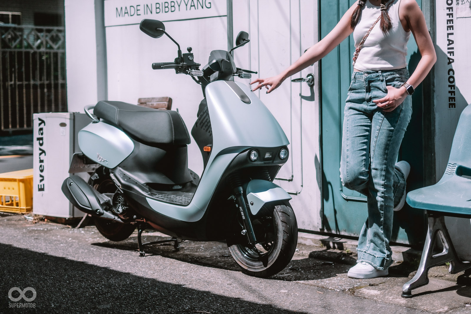 而對於較嬌小的沛沛來說,745mm 低座高表現相當有幫助,特別是輕盈的車身與雙腳足著性優異的狀況下,把車推下中柱是有感的省力。平常代步車是150 c.c. 17吋檔車的嗡嗡,換上優格125 同樣覺得操駕起來完全沒有壓力,嬌小的車身穿梭市區完全沒有問題。