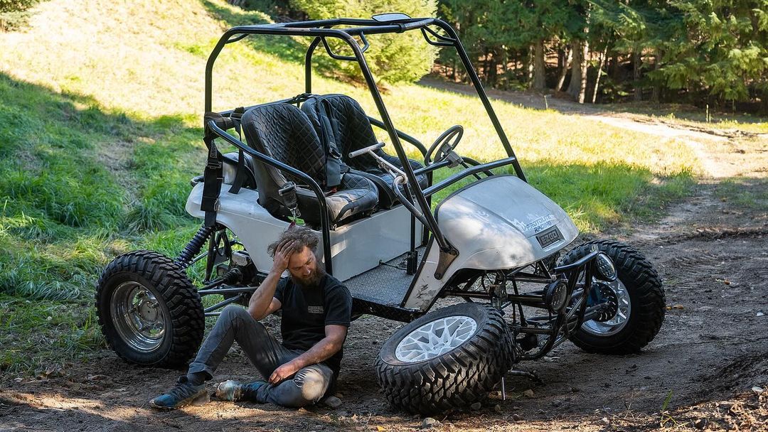 為了讓這輛車更穩定,他們對懸吊系統做了全面升級,包括許多客製化零件,加強車架來應付惡劣的地形。現在它配備了長行程懸吊、防滾籠和越野輪胎,這些改造讓它更像一輛瘋狂的越野車,而不再是普通的高爾夫球車。