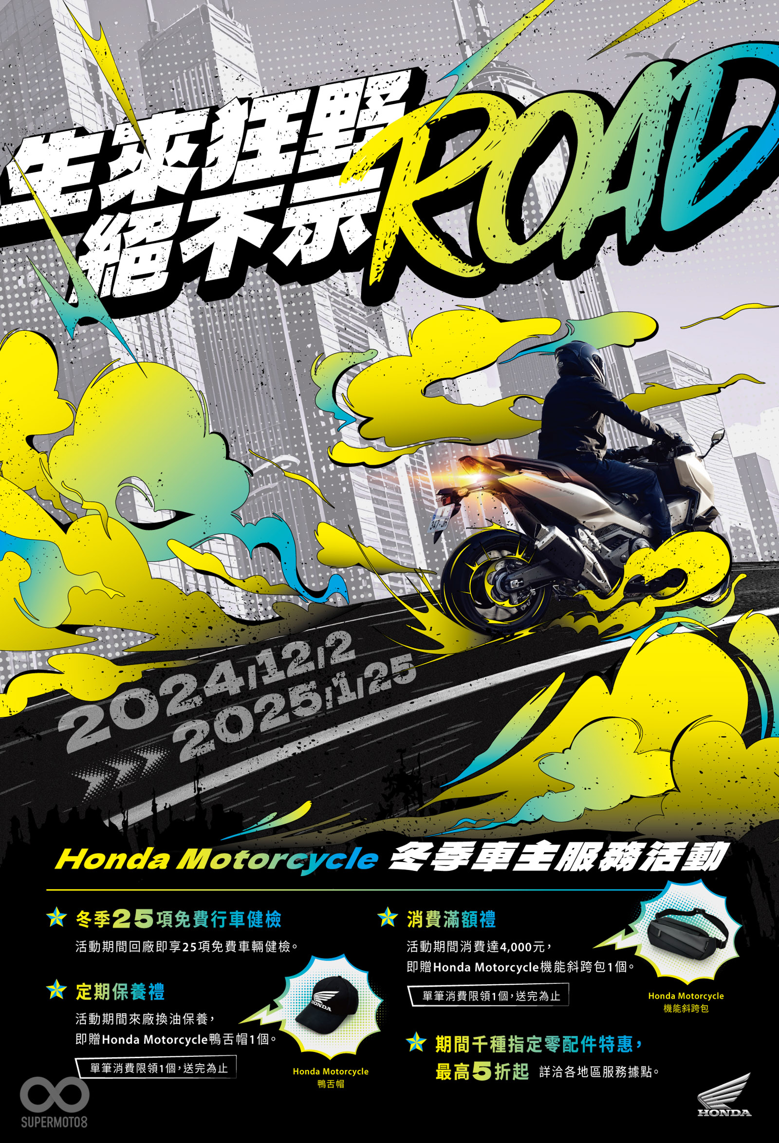 生來狂野,絕不示ROAD!2024年Honda Motorcycle冬季車主服務活動即日起開跑囉!