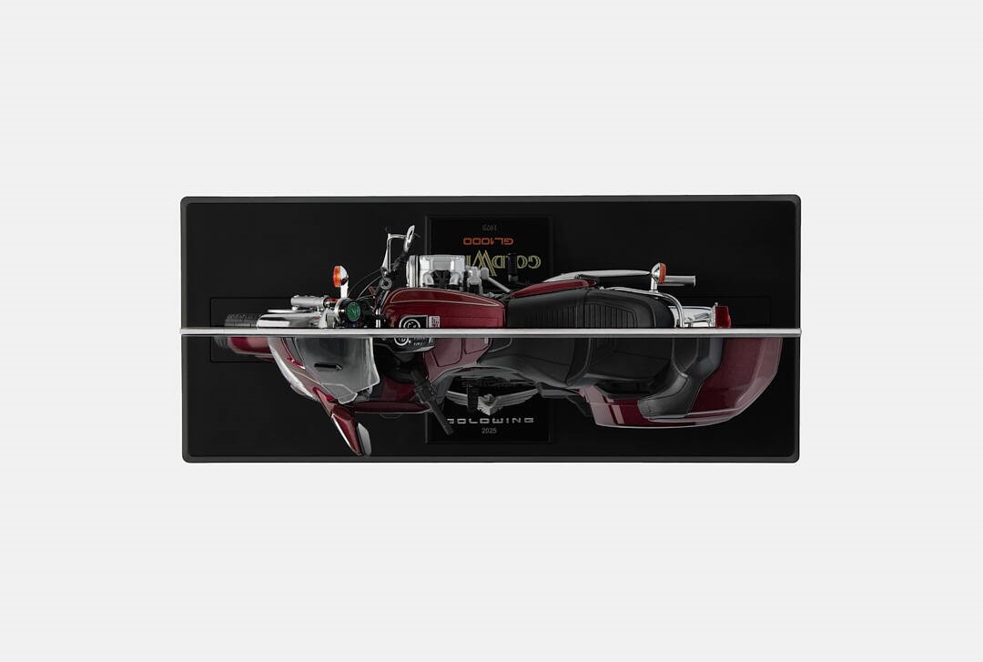 Honda更特別推出限量1,833台紀念版Gold Wing,隨車附贈一款精緻的半對半復刻模型,一側展示初代GL1000的經典設計,另一側則是2025年式的現代風貌,完美呈現Gold Wing的演變與傳承。