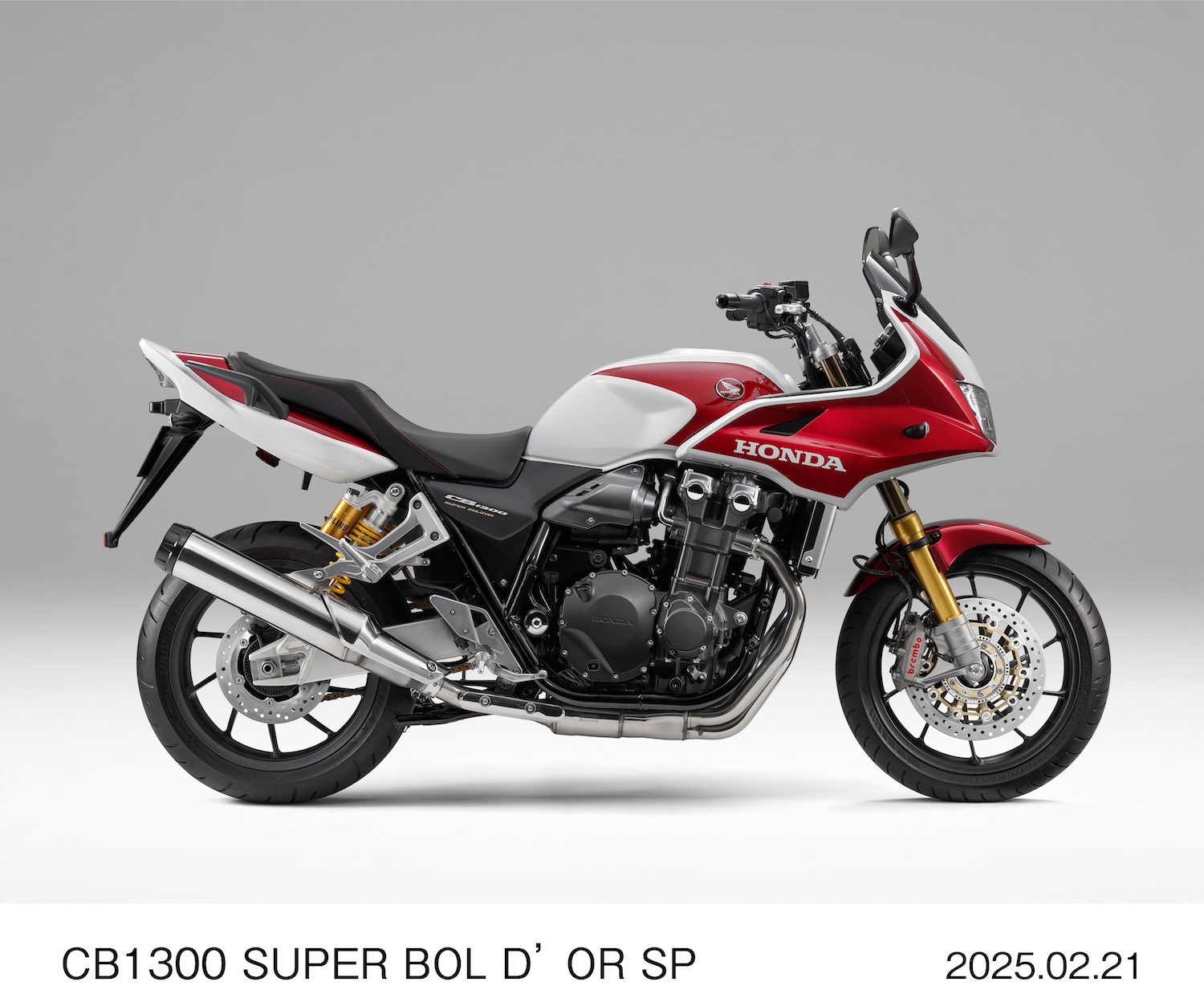 此外,金色傳動鏈條的設計呼應了初代車款的標誌性風格,而銀色搖臂、龍頭橋與轉向軸承座則進一步提升了視覺層次,展現出精緻且充滿力量感的細節工藝。CB1300 SUPER FOUR 版本的燃油箱側面採用 Honda 文字標誌,而 BOL D’OR 版本則選用立體飛翼標誌,展現出不同版本的個性與特色。