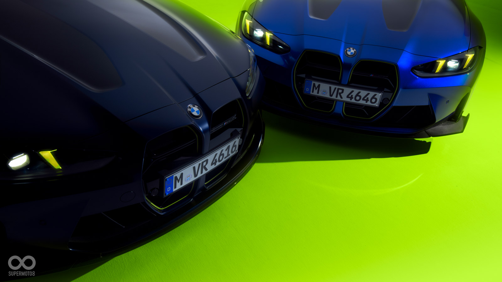 這款特仕版最獨特之處,在於它專屬的 BMW Individual 車色,並搭配碳纖維車頂及大量碳纖維外觀部件,彰顯賽道基因。Sport 版本 採用 Marina Bay Blue 金屬漆,車側則以 Tanzanite Blue 金屬漆繪製超大「46」號誌,而 Style 版本 則是 Frozen Tanzanite Blue 消光藍車身,並在車側施以 Frozen Marina Bay Blue 的 46 號設計。貫穿車身的 亮黃色 細節,如 M 水箱護罩外框、輪圈 V 字輻條、煞車卡鉗與門框飾條,皆向 Rossi 的招牌配色致敬。