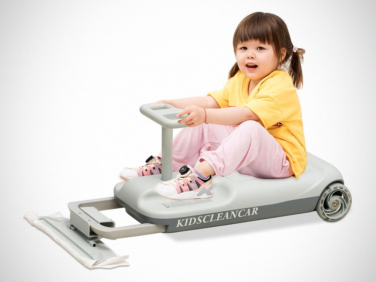 這個絕妙的發明來自Henry's Toy Box的天才創意:孩子們天生熱愛騎乘玩具,何不順便讓他們在家裡轉圈圈時順便清潔地板呢?這款12伏電動「迷你室內卡丁車」配備了可拆卸式拖地頭,讓小小車手在家中愉快巡航時,地板也順便變得乾乾淨淨!