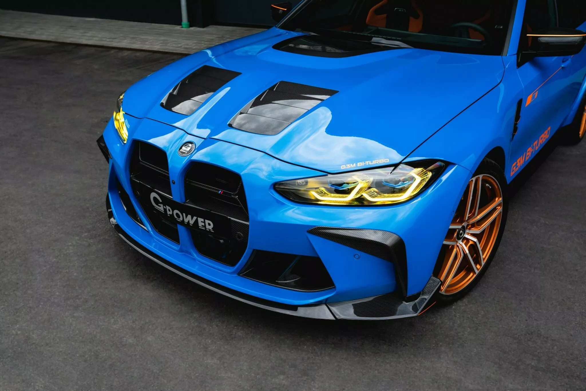 除了性能上的大幅提升,G-Power也為G3M Bi-Turbo注入更具侵略感的外觀設計。這輛車換上了亮眼的Hurricane RR輪圈,並以醒目的橘色塗裝強調它的與眾不同。碳纖維引擎蓋設計與M3 CS相似,擁有大尺寸散熱孔,有效提升引擎的冷卻效能。此外,碳纖維前下擾流、後視鏡外殼與後下擴散器的加入,不僅進一步增強空氣力學效應,也讓整體造型更加激進。