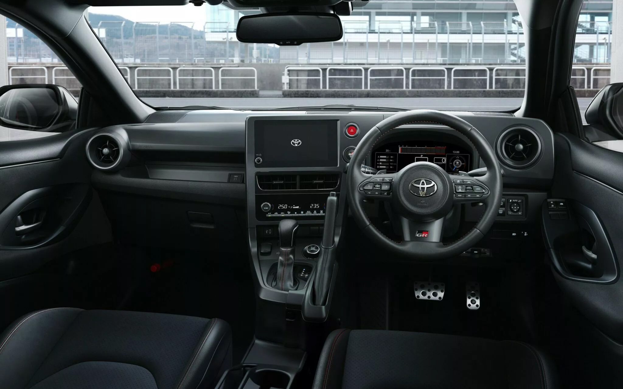 本次改款最引人矚目的,動力方面維持 1.6 升直列三缸渦輪增壓引擎,最大馬力提升至 300 hp(約 304 PS),峰值扭力則達 400 Nm(約 40.8 公斤米),延續 GR 系列強調的輕量高效與熱血駕馭哲學。傳動方面除了維持傳統六速手排外,Toyota 也導入新開發的八速自排變速箱,經過專屬調校,針對激烈駕駛提供更精準的換檔時機與反應速度。為了進一步提升操作性,駕駛介面同步升級加大型煞車踏板設計。