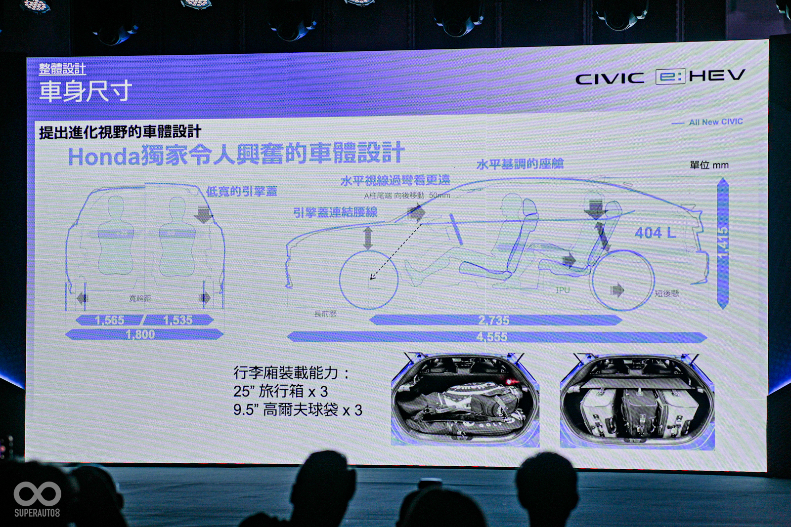 底盤結構方面,CIVIC e:HEV由Honda日本寄居工廠製造,沿襲本田一貫強調駕馭樂趣的DNA,採用低重心懸吊、加長軸距與加寬輪距設定,並配備235/40 R18的Michelin Pilot Sport 4S高性能輪胎,無論城市駕馭或彎道攻勢皆游刃有餘,提供歐規水準的精準操控與高速穩定性。