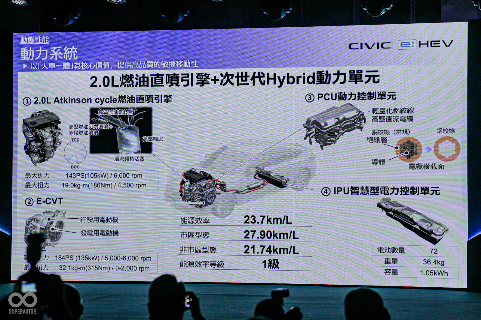 動力核心仍為備受好評的e:HEV電驅雙動能系統,結合2.0升Atkinson循環DOHC直噴引擎與雙電動馬達及電力控制單元,創造最大綜效輸出184匹馬力與32.1公斤米的扭力。